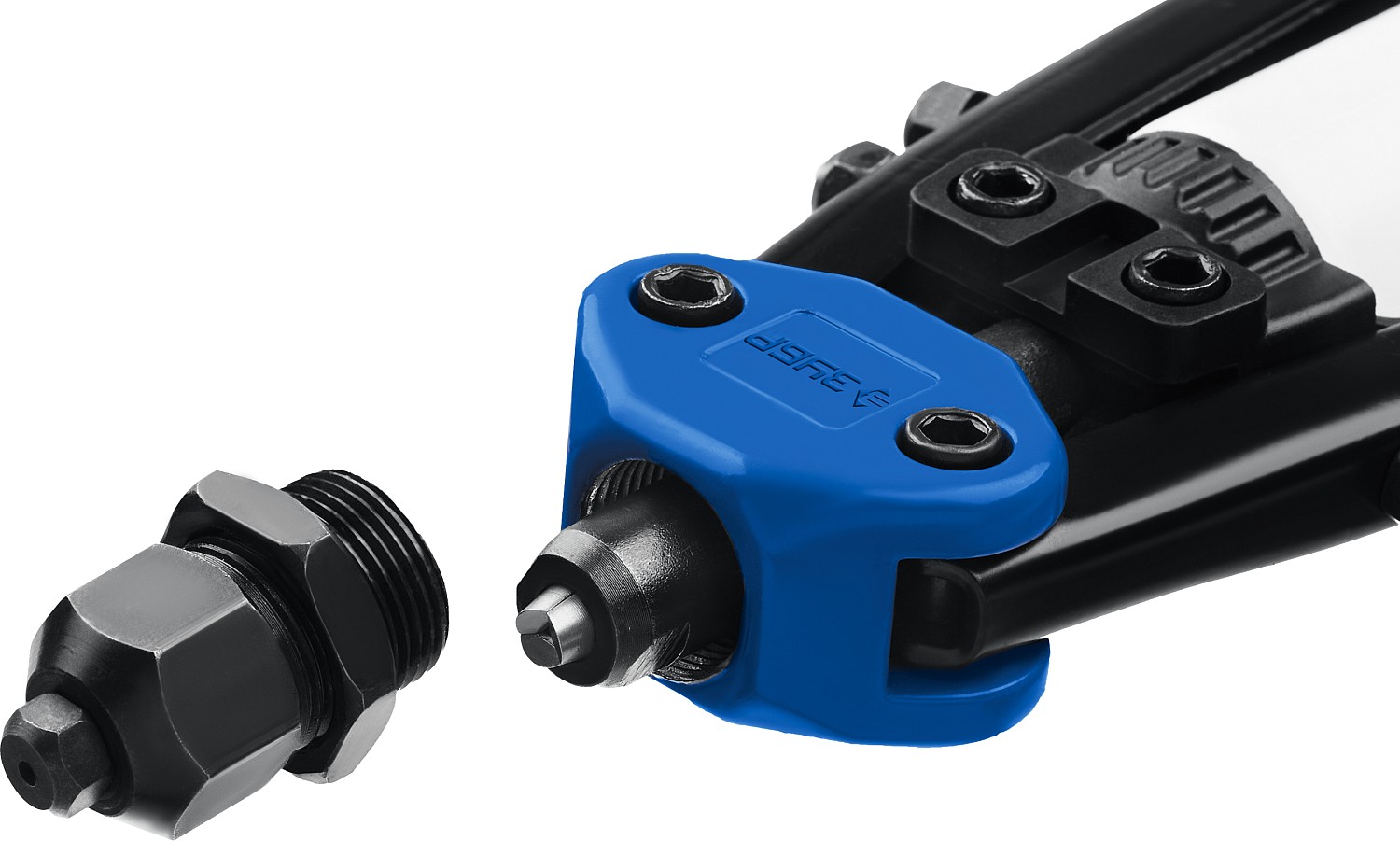 - Установка заклепок требует меньших усилий благодаря двухрычажной конструкции