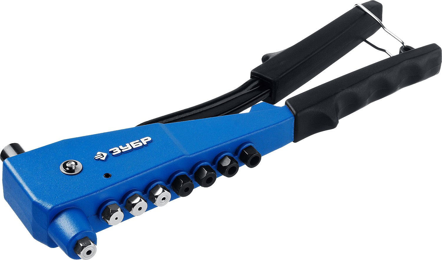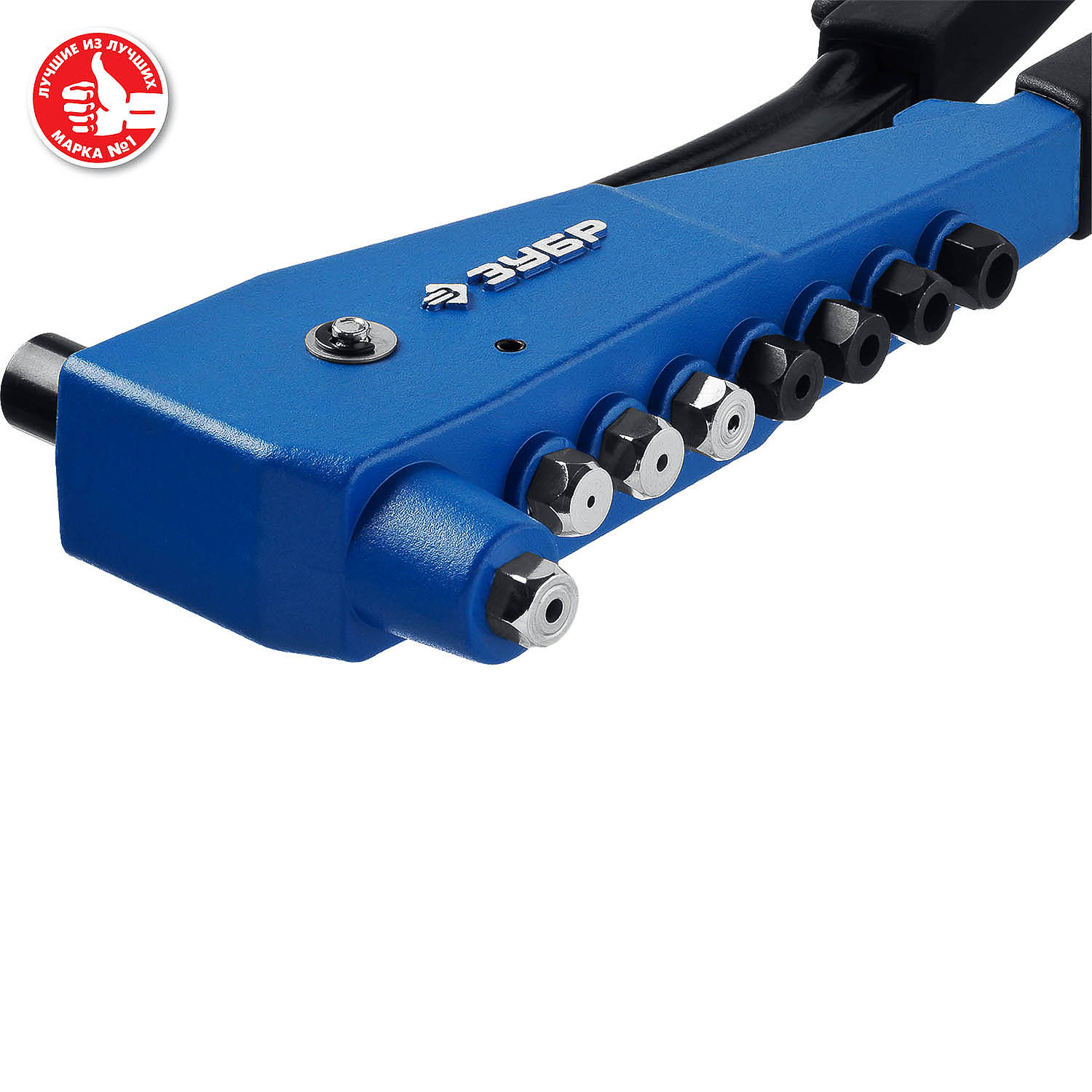 Применяется для установки резьбовых и вытяжных заклепок. Используется с алюминиевыми и стальными заклепками диаметром 2,4, 3,2, 4,0, 4,8 мм и нержавеющими заклепками диаметром 2,4, 3,2, 4,0 мм, резьбовыми заклепками М3, М4, М5, М6 Способ применения Установка вытяжных заклепок: 1. Просверлите отверстие 2. Сожмите рукоятки. Установите насадку. Установите заклепку в заклепочник, а затем в отверстие 3. Сжимайте и разжимайте рукоятки заклепочника до момента откусывания хвостовика заклепки. Установка резьбовых заклепок: 1. Просверлите отверстие 2. Сожмите рукоятки. Установите насадку для резьбовых заклепок. Выкрутите ось с губками и накрутите на нее стержень с резьбой (Внимание! На стержне и на оси левосторонняя резьба!). Вкрутите ось, стержень с резьбой должен выходить из отверстия в насадке. 3. Разожмите рукоятки. Накрутите резьбовую заклепку. 4. Вставьте заклепку в отверстие и сожмите рукоятки. Если недостаточно одного движения, произведите регулировку хода выкручиванием оси и сожмите ру