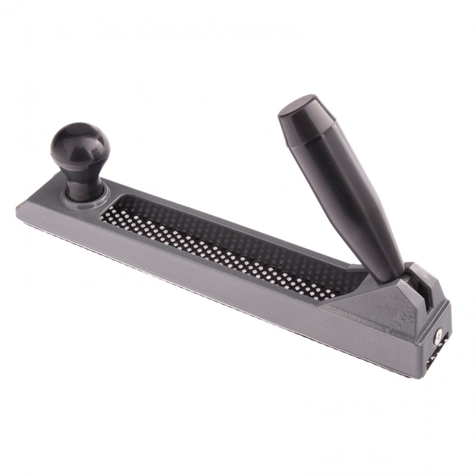 Металлический обдирочный рубанок Matrix 879165 с размером полотна 250 х 42 мм, с переставной ручкой, служит для выравнивания кромок листов гипсокартона, а также подходит для обработки пластмассы, фибергласа и мягкой древесины. Корпус из прочного алюминиевого сплава обеспечивает инструменту долговечность. Рубанок применяют при выполнении ремонтных и отделочных работ.ПреимуществаПереставную пластиковую рукоятку можно зафиксировать под удобным углом, что снижает утомляемость и повышает комфортность работы.Отверстия в рабочем полотне способствуют эффективному отводу стружки, что увеличивает производительность и повышает рабочий ресурс инструмента.Благодаря специальным креплениями полотно легко можно заменить.