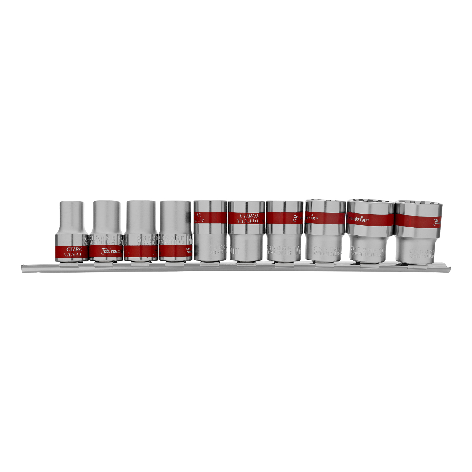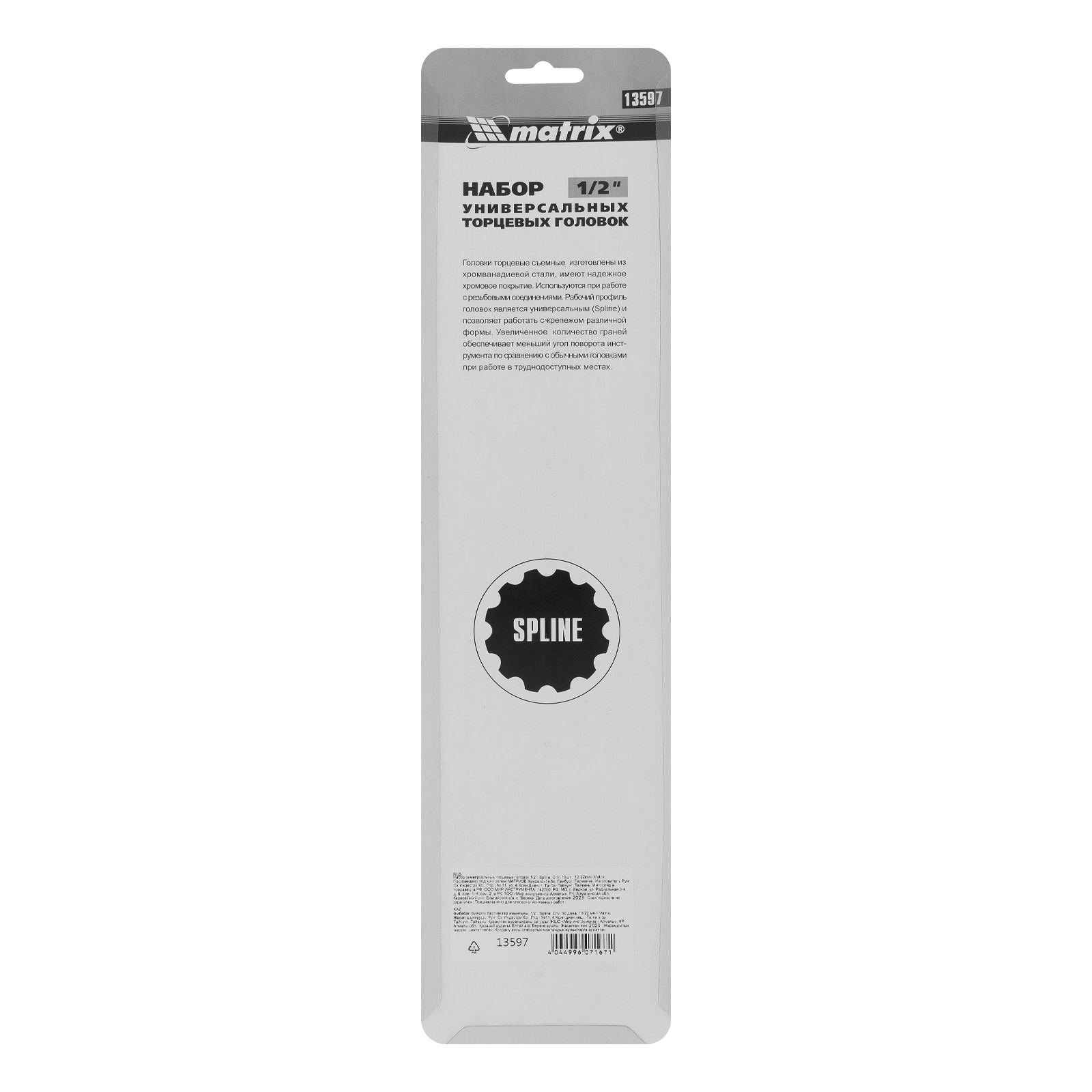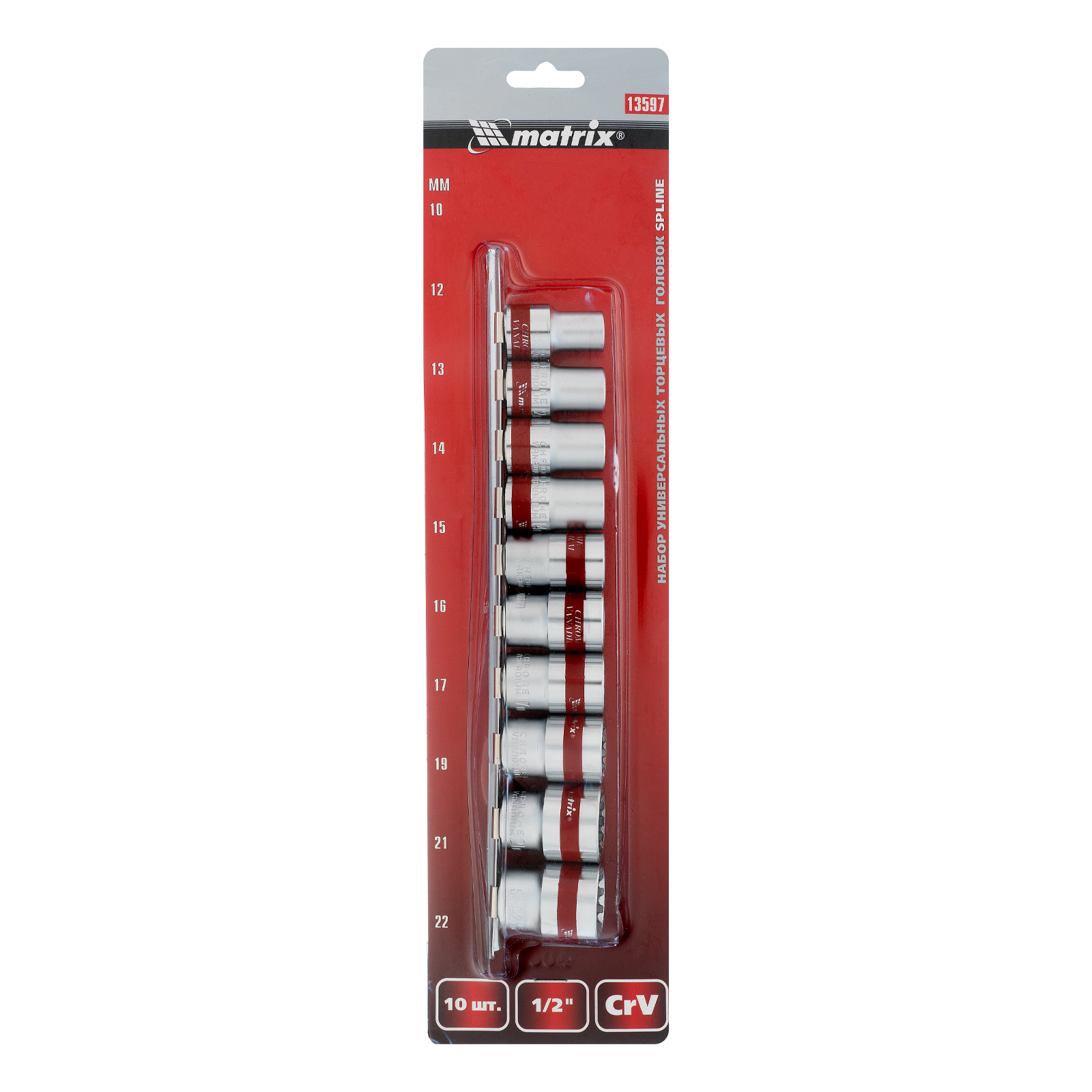 Набор универсальных торцевых головок Matrix 13597 состоит из 10 насадок размером 10-22 мм, из стали CrV, с посадочным гнездом 1/2" и 12-гранным профилем Spline. Комплект включает головки популярных размеров и используется для слесарно-монтажных работ в бытовой и профессиональной сферах.ПреимуществаУниверсальность — рабочий профиль Spline подходит для работы с любым типом крепежа.Прочность и долговечность — насадки из хромованадиевой стали выдерживают интенсивные нагрузки и устойчивы к износу.Защита от разрушения — полированное хромоникелевое покрытие предотвращает образование коррозии.Быстрый поиск нужной торцевой головки — на корпусах насадок имеются красные полоски и маркировка с обозначением размера.Удобное хранение — благодаря металлической планке-держателю торцевые головки всегда будут под рукой и не потеряются.