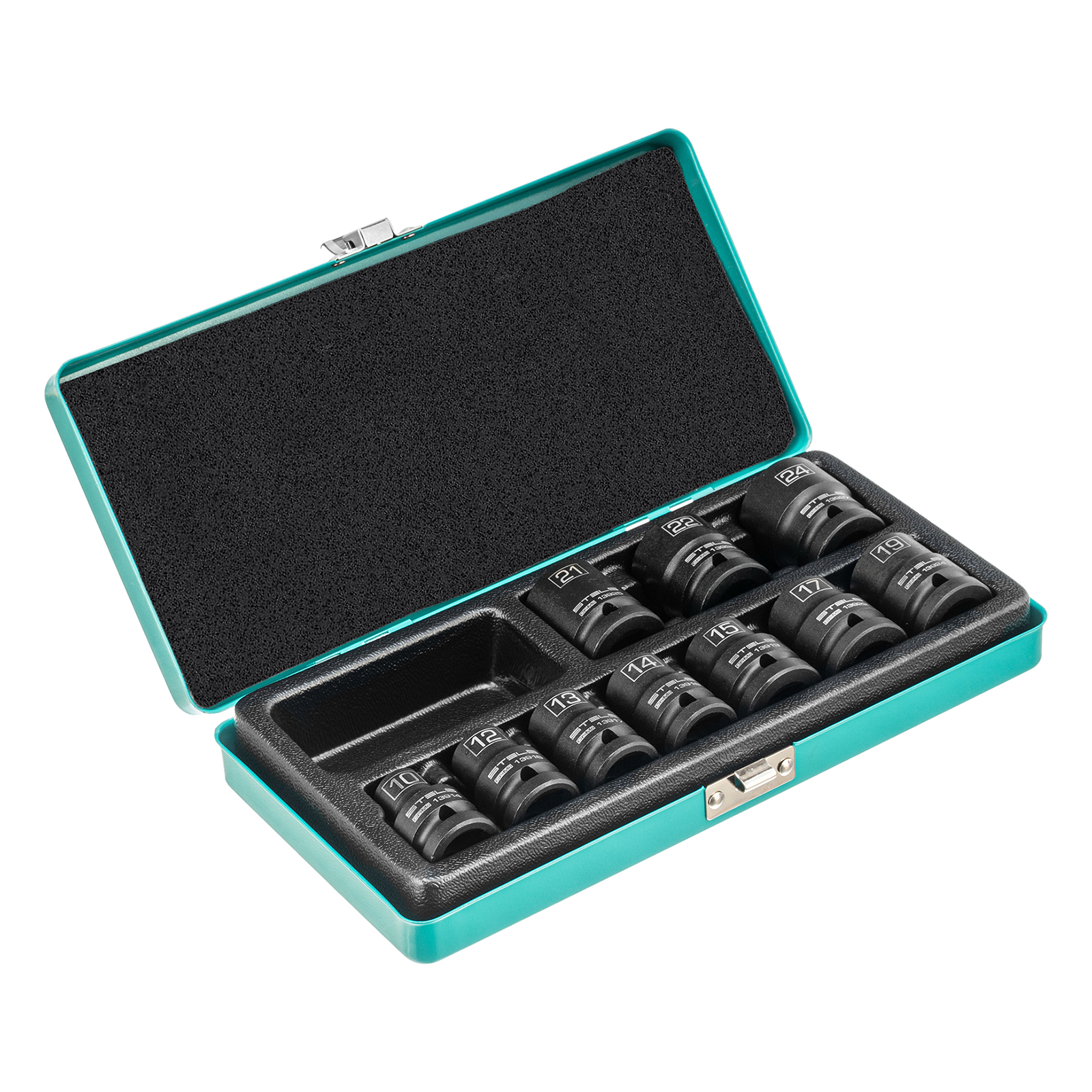 Набор шестигранных ударных торцевых головок Stels 13997 включает в себя 10 насадок размером 10-24 мм с присоединительным квадратом 1/2 дюйма для монтажа и демонтажа крепежных элементов. Используются в качестве оснастки с электрическими или пневматическими гайковертами. Насадки выдерживают интенсивные ударные нагрузки, подходят для применения в автомастерской, на строительной площадке и в слесарном цеху.ПреимуществаПрочность и долговечность — торцевые головки изготовлены из хромомолибденовой стали, твердость рабочих частей составляет 44-48 HRC.Коррозионная стойкость — на головки нанесено матовое фосфатное покрытие.Удобное хранение и транспортировка — набор упакован в прочный металлический кейс.