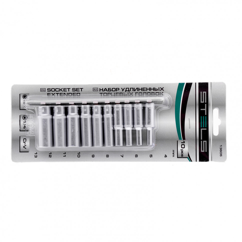 Набор 6-гранных удлиненных торцевых головок Stels 13605 из стали CrV включает 10 насадок размером 4-13 мм с хвостовиком 1/4 дюйма. Торцевые головки используются для монтажа и демонтажа резьбовых соединений в труднодоступных местах, а удлиненный профиль позволяет работать с крепежными элементами на высоких шпильках. Набор пригодится для проведения ремонтных работ дома, на даче или в гараже, подходит также для профессионального применения.ПреимуществаПрочность и износостойкость — головки из высококачественной хромованадиевой стали выдерживают интенсивные нагрузки.Коррозионная стойкость — на головки нанесено матовое хромоникелевое покрытие.Удобное хранение — головки поставляются с металлической плашкой-держателем.