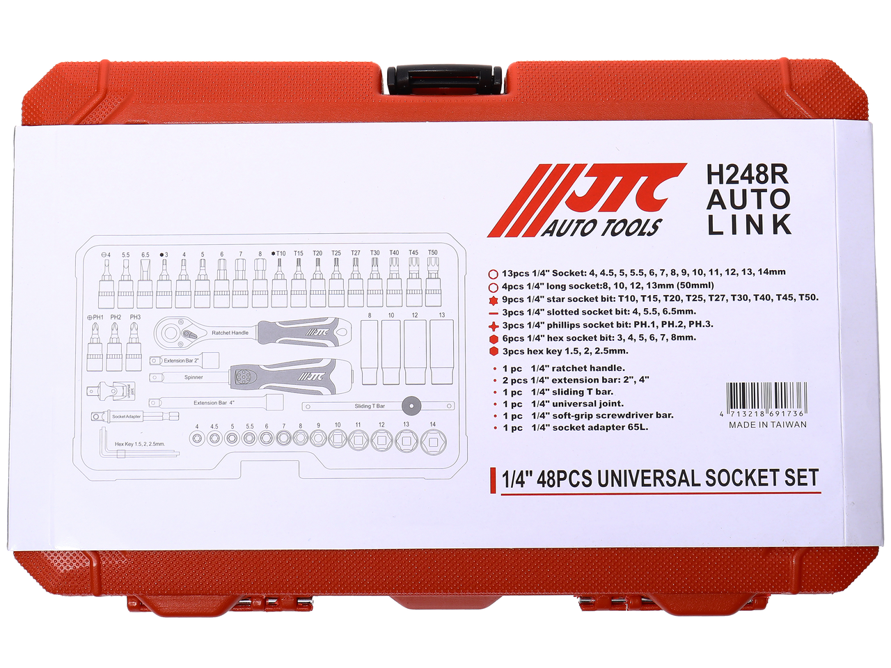 13шт 1/4" головки: 4, 4.5, 5, 5.5, 6, 7, 8, 9, 10, 11, 12, 13, 14 мм.