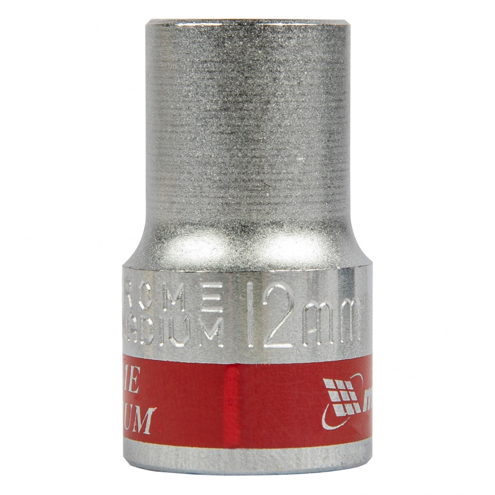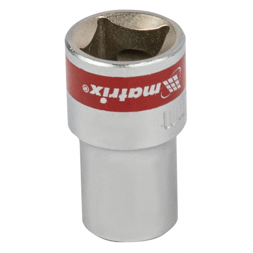 Хромированная торцевая головка Matrix 13112 из стали CrV, размером 12 мм, с 6-гранным профилем и посадочным квадратом 1/2"" — оснастка для слесарного инструмента, предназначенная для монтажа и демонтажа резьбовых соединений. Динамический шестигранный профиль обеспечивает максимальный контакт с головкой крепежа, что уменьшает ее деформацию при высоких нагрузках. Насадка пригодится для проведения монтажных и ремонтных работ дома, на даче или в гараже.ПреимуществаПрочность — оснастка выполнена из хромованадиевой стали, а твердость ее рабочей части составляет 42 HRC.Защита от разрушения — полированное хромоникелевое покрытие предохраняет торцевую головку от образования коррозии.Быстрый поиск насадки среди других инструментов — торцевая головка маркирована красной полосой, на корпус нанесено обозначение типоразмера.