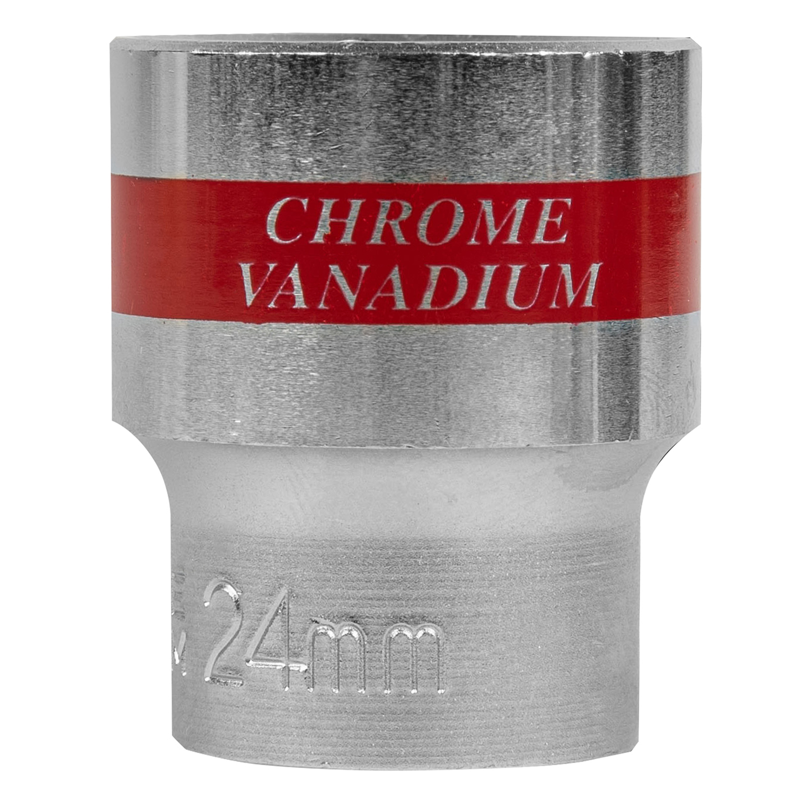 Хромированная торцевая головка Matrix 13124, 24 мм, 6-гранная, CrV, с посадочным квадратом 1/2 дюйма - это оснастка для слесарного инструмента, которая применяется при монтаже и демонтаже резьбовых соединений. Динамический шестигранный профиль обеспечивает максимальный контакт с головкой крепежа, что уменьшает его деформацию при высоких нагрузках. Насадка пригодится для установки и снятия оборудования, проведения ремонтных работ дома, на даче или в гараже.ПреимуществаОснастка выполнена из хромованадиевой стали, а твердость ее рабочей части составляет 42 HRC, что гарантирует высокую износостойкость.Полированное хромоникелевое покрытие защищает торцевую головку от коррозии, продлевая ее ресурс.Благодаря красной полоске насадку легко найти среди других инструментов.