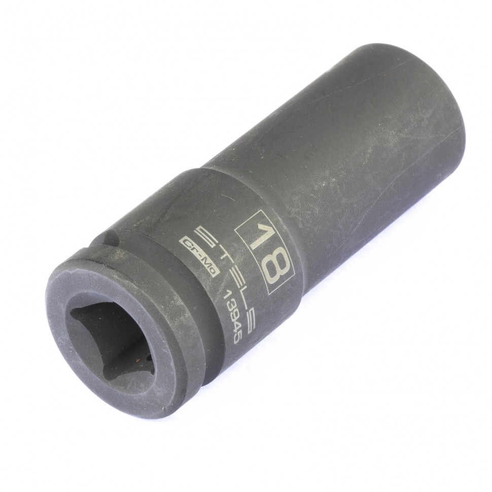 Ударная удлиненная шестигранная головка Stels 13945 размером 18 мм, из стали CrMo, с присоединительным квадратом 1/2 дюйма, предназначена для монтажа и демонтажа резьбовых соединений с помощью пневматического или электрического гайковерта. Подходит для профессионального применения на строительной площадке и в автомастерской, т.к. выдерживает интенсивную эксплуатацию с высокими динамическими нагрузками. Головка имеет удлиненный профиль, что облегчает работу в труднодоступных местах.ПреимуществаИзносостойкость — головка из хромомолибденовой стали устойчива к деформации и истиранию.Прочность — за счет твердости рабочей части 44-48 HRC головка выдерживает высокие нагрузки без риска поломки.Защита от разрушения — матовое фосфатное покрытие предотвращает образование коррозии.