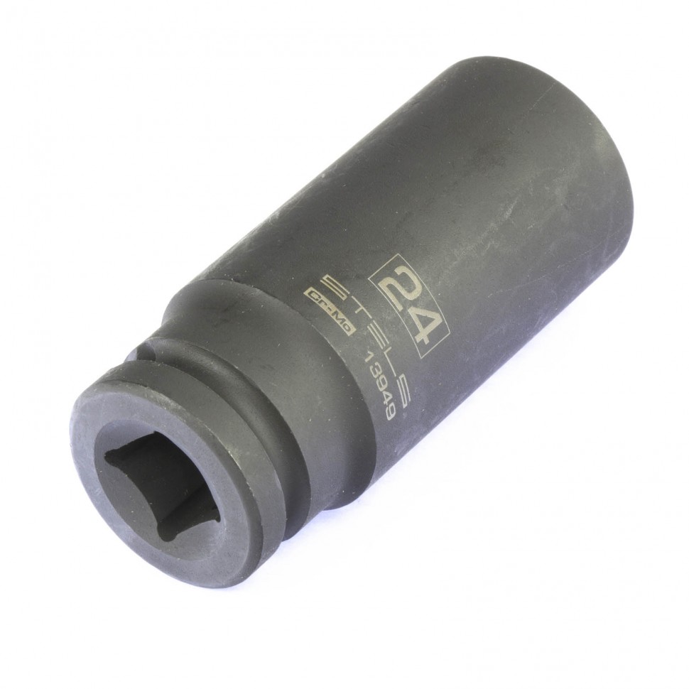 Ударная удлиненная шестигранная головка Stels 13949 размером 24 мм, из стали CrMo, с присоединительным квадратом 1/2 дюйма, предназначена для монтажа и демонтажа резьбовых соединений с помощью пневматического или электрического гайковерта. Подходит для профессионального применения на строительной площадке и в автомастерской, т.к. выдерживает интенсивную эксплуатацию с высокими динамическими нагрузками. Головка имеет удлиненный профиль, что облегчает работу в труднодоступных местах.ПреимуществаИзносостойкость — головка из хромомолибденовой стали устойчива к деформации и истиранию.Прочность — за счет твердости рабочей части 44-48 HRC головка выдерживает высокие нагрузки без риска поломки.Защита от разрушения — матовое фосфатное покрытие предотвращает образование коррозии.