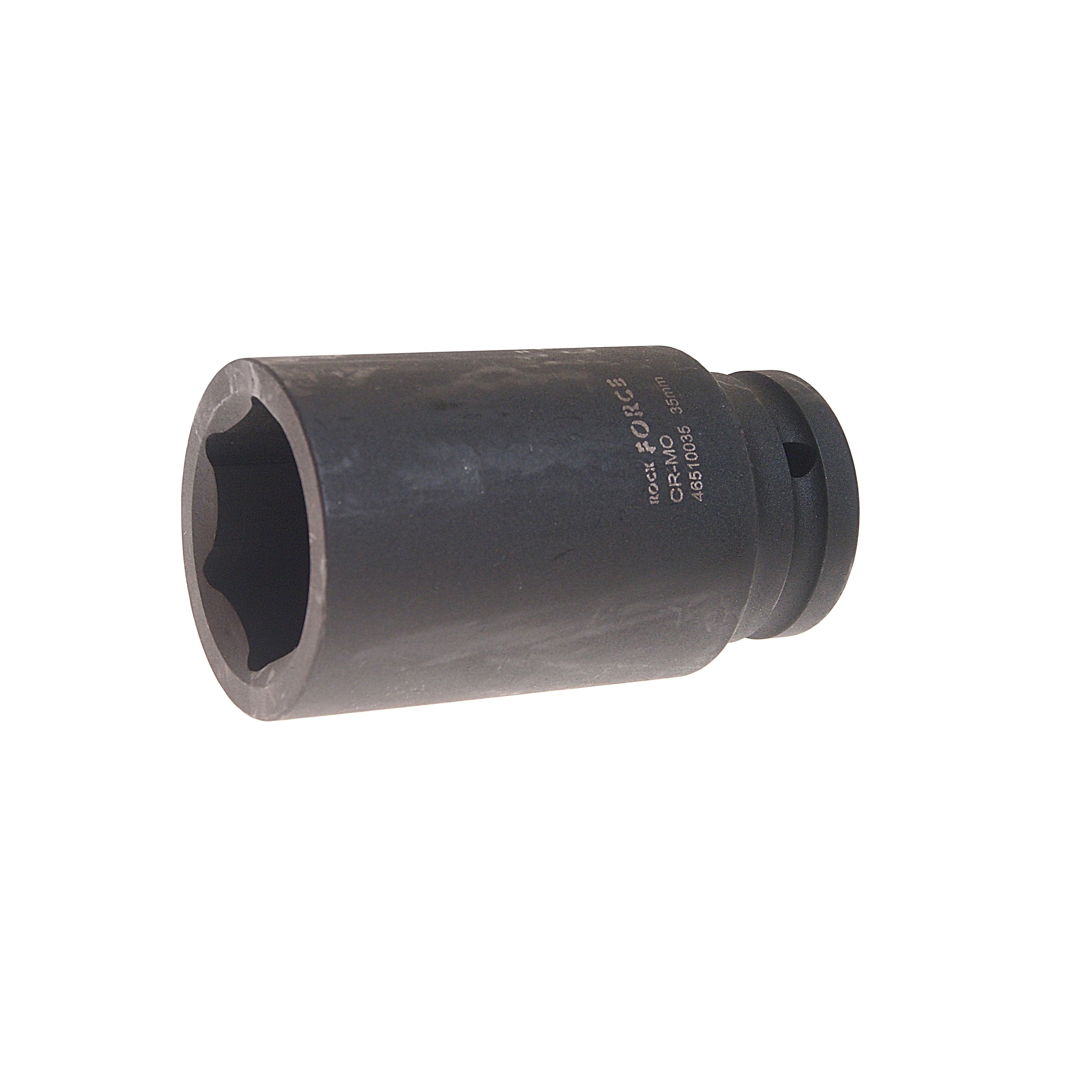 Головка торцевая 35мм 3″ 6-гранная ударная удлиненная L=95мм RockForce Головка изготовлена из хром-ванадиевой стали. При изготовлении, используется метод горячей ковки, что делает инструмент устойчивым к сильному физическому воздействию, и позволяют классифицировать головку как «ударную». Имеет дополнительный 6-гранный внешний присоединительный профиль, тем самым увеличивая длину, и позволяют откручивать и закручивать болты, находящиеся в глубоких пазах.