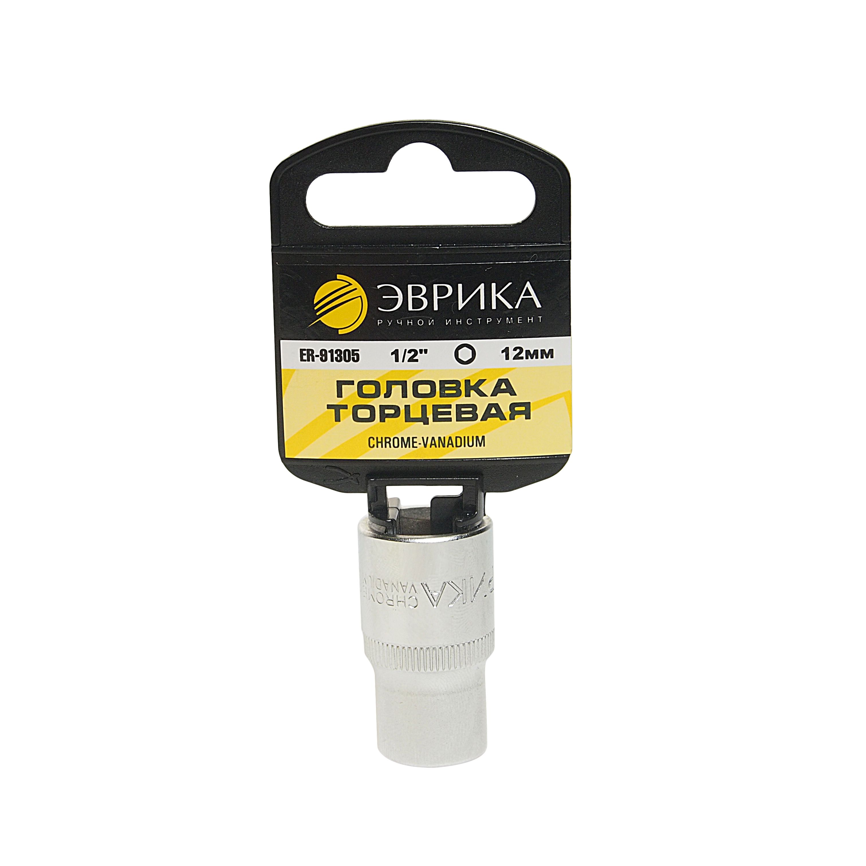 Головка торцевая 12мм 1/2" 6-гранная L=40мм ЭВРИКА оптимальным материалом для изготовления надежных и долговечных головок является сталь с легирующими хром-ванадиевыми добавками.