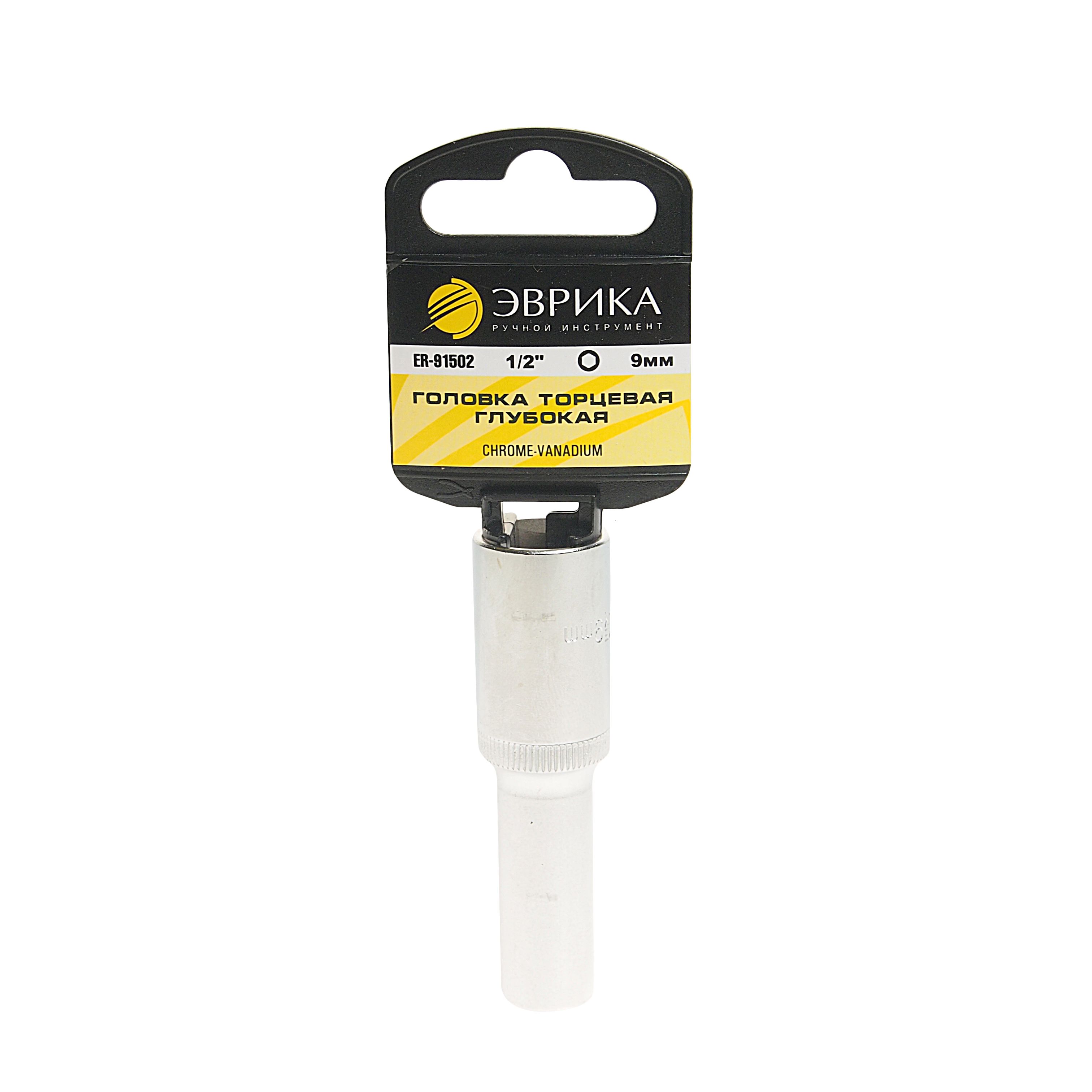 Головка торцевая 9мм 1/2" 6-гранная глубокая L-80мм(с держателем) ЭВРИКА ER-91502H.