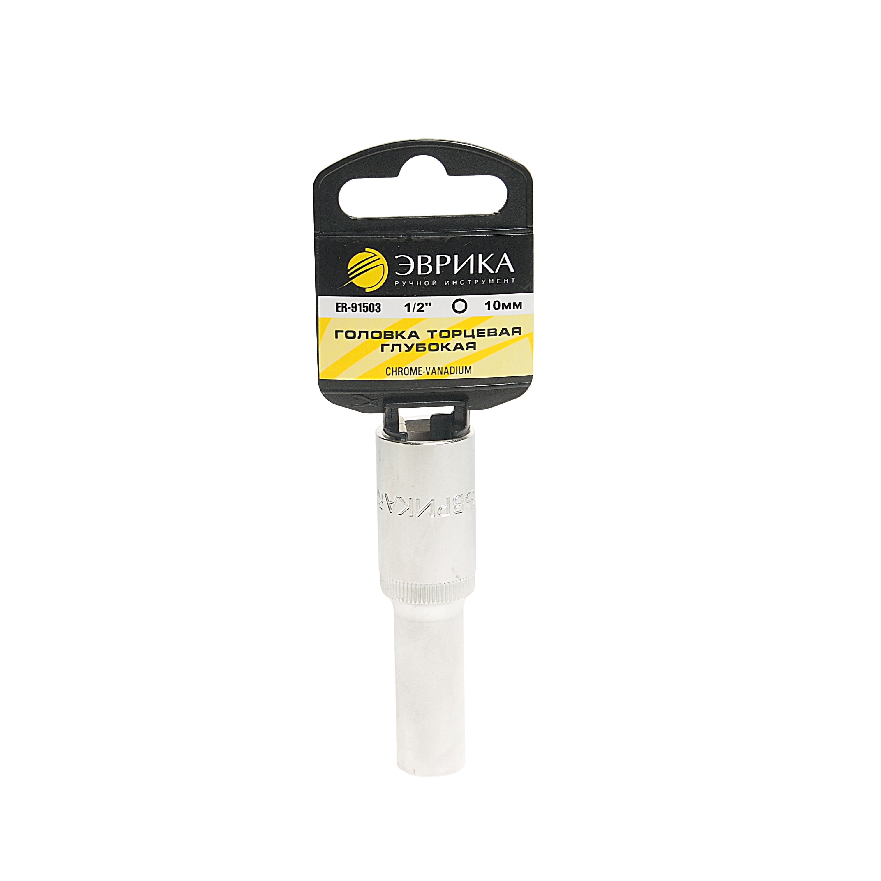 Головка торцевая 10мм 1/2" 6-гранная глубокая L=80мм(с держателем) ЭВРИКА ER-91503H.