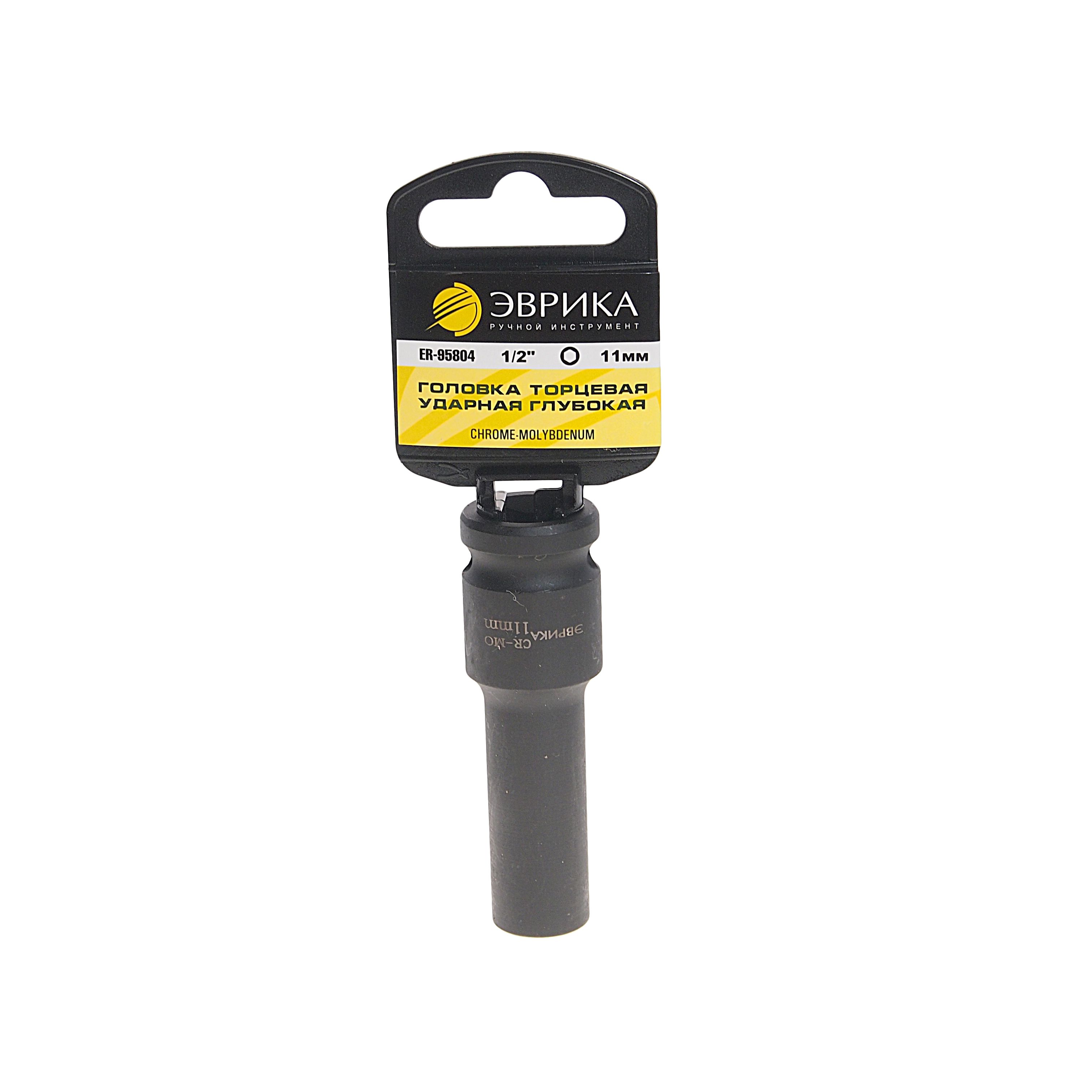 Головка торцевая 11мм 1/2" 6-гранная ударная глубокая L-78мм(с держателем) ЭВРИКА ER-95804H.