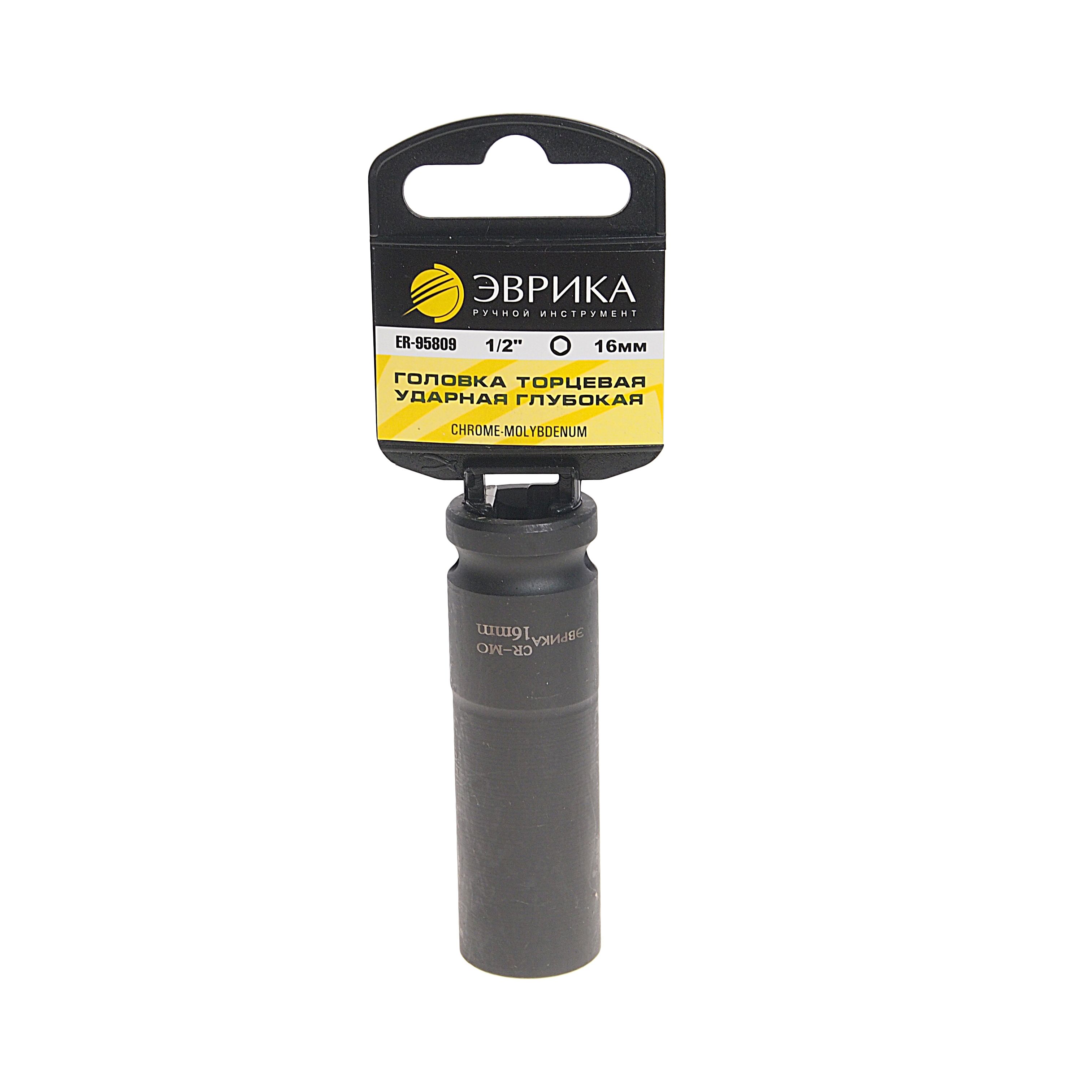 Головка торцевая 16мм 1/2" 6-гранная ударная глубокая L-78мм(с держателем) ЭВРИКА ER-95809H.