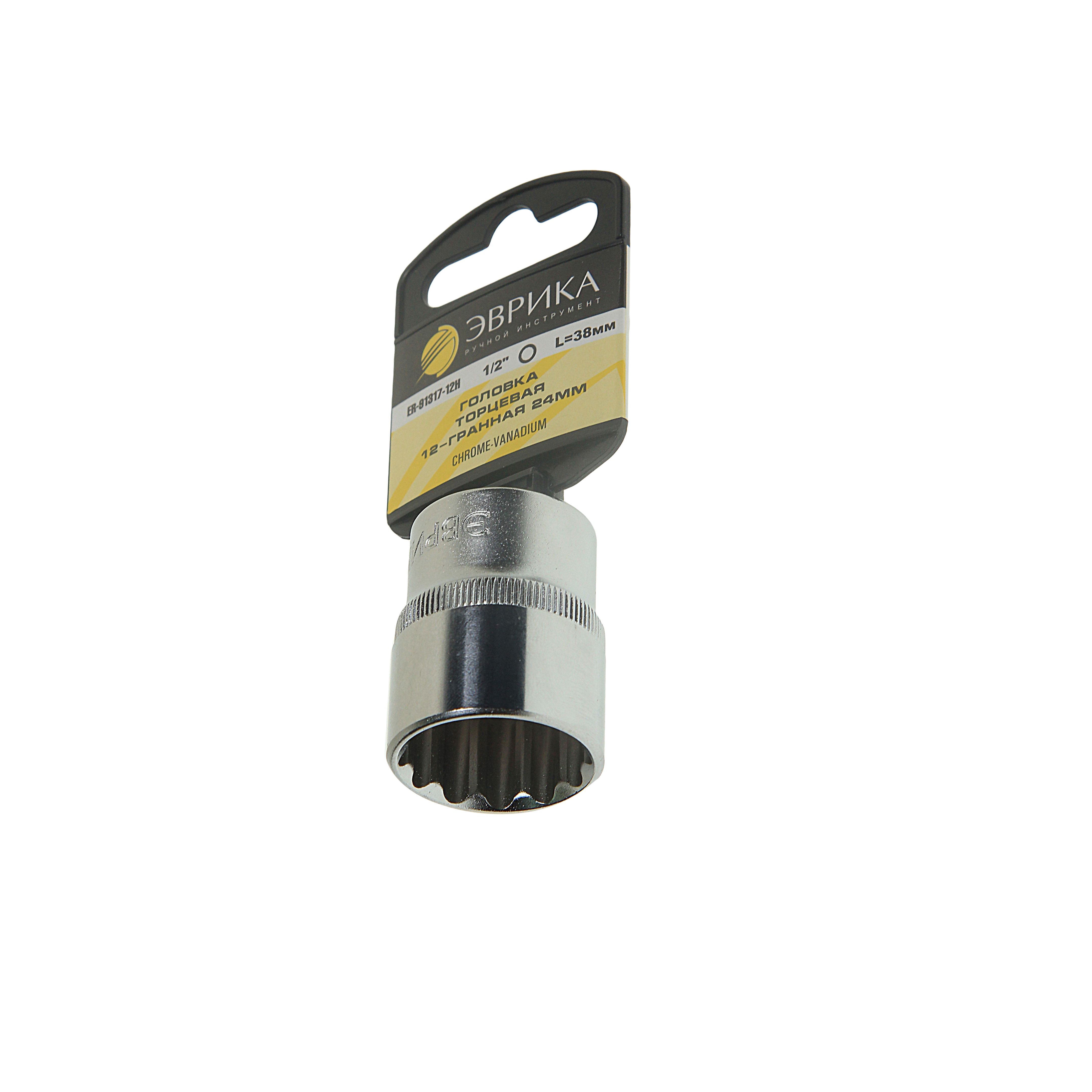 Головка торцевая 24мм 1/2" 12-гранная L=40мм ЭВРИКА ER-91317-12H на держателе
