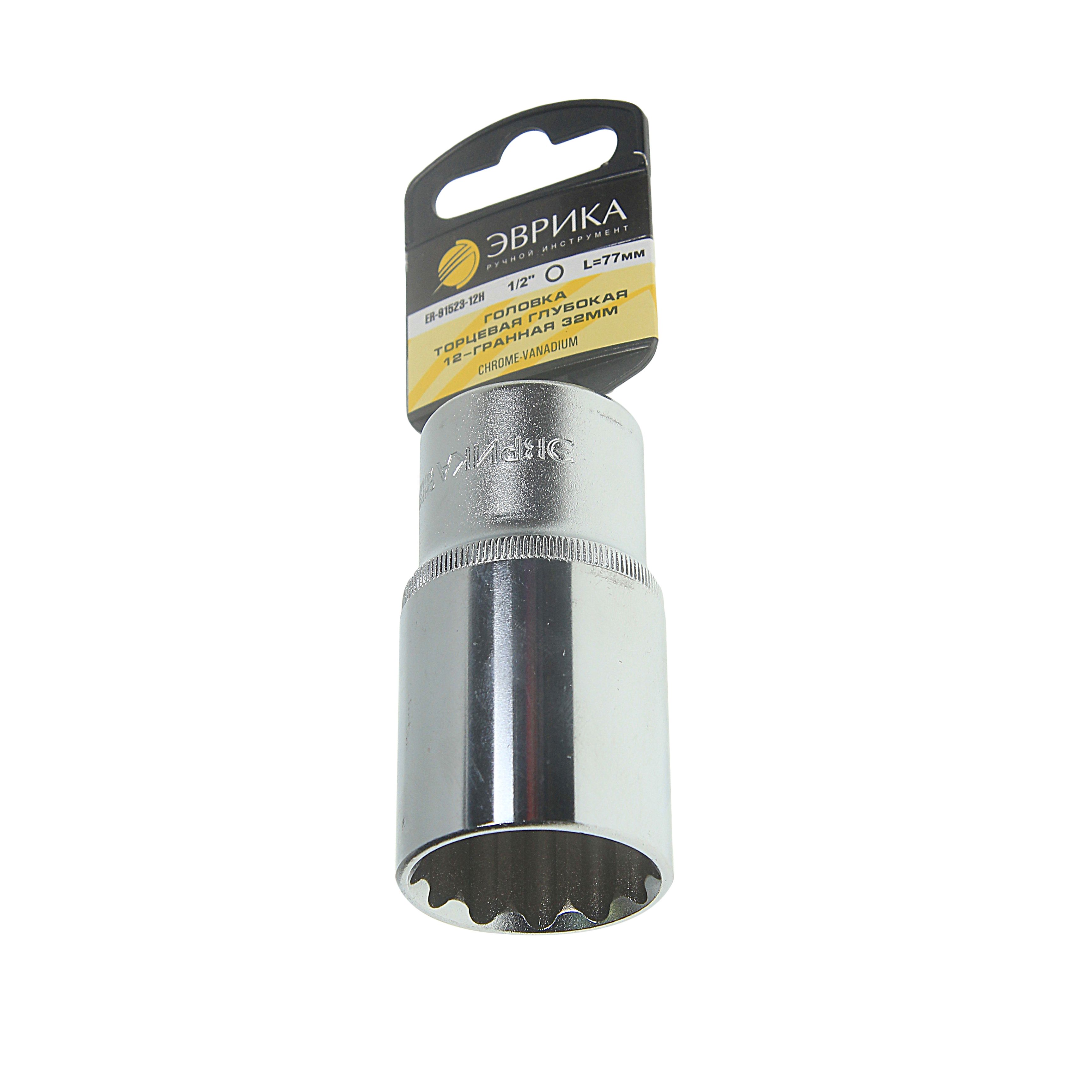 Головка торцевая 32мм 1/2" 12-гранная глубокая L=80мм (с держателем) ЭВРИКА ER-91523-12H