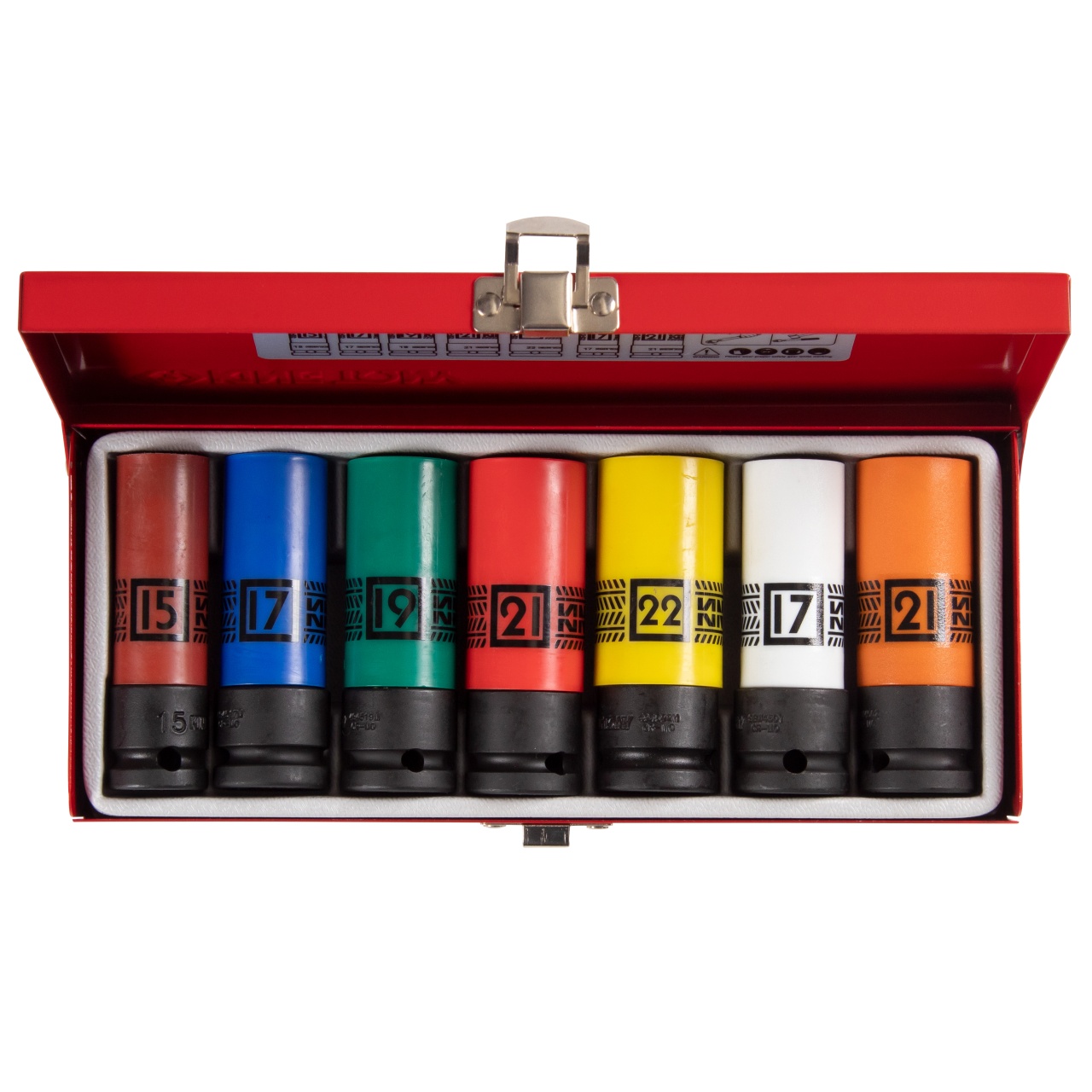 – Головки торцевые ударные глубокие тонкостенные с пластиковой защитой – 15, 17, 19, 21, 22 мм (4945M)