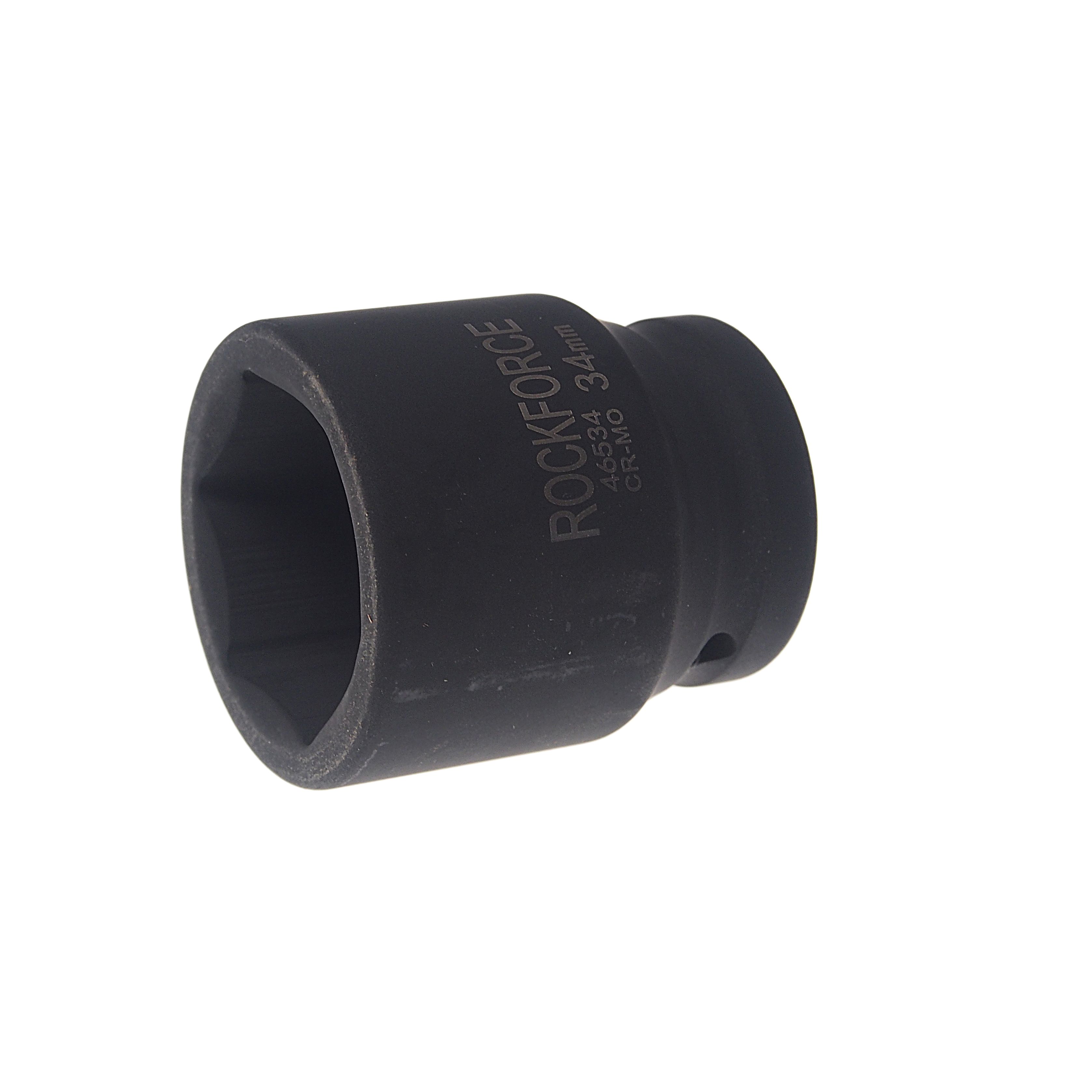 Головка торцевая 34мм 3″ 6-гранная ударная L=54мм RockForce Головка в форме правильного шестиугольника. Используется, в частности, в машиностроении, мебельной, авиационной и автомобильной промышленности. Головка изготовлена из хром-ванадиевой стали. При изготовлении, используется метод горячей ковки, что делает инструмент устойчивым к сильному физическому воздействию, и позволяют классифицировать головку как «ударную».