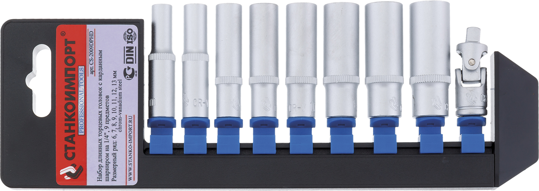 Набор торцевых головок 1/4" высокие 9 предметов (пластиковая стойка)