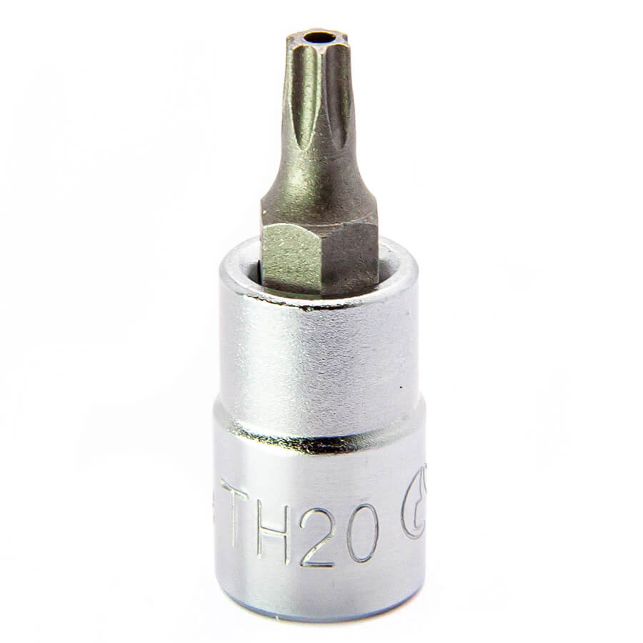 Торцевая головка со вставкой TORX c отверстием HANS. Изготовлена из инструментальной стали S2, твердостью 60 HRC.
