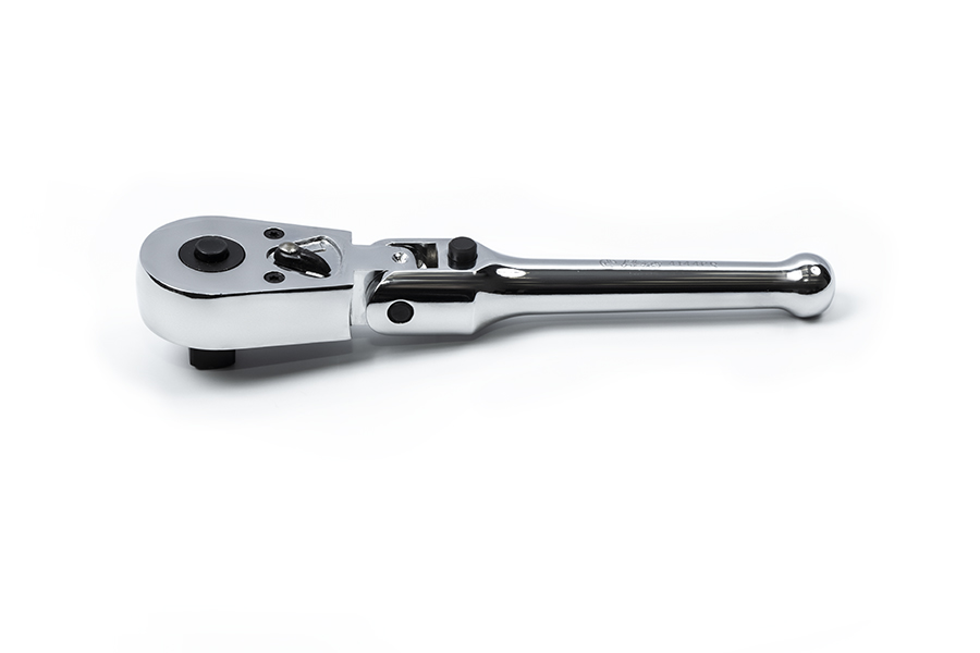 Трещотка с храповым механизмом на шарнире отличается простотой и удобством в применении. Трещоточный механизм ключа позволит работать им, не отрывая от закручиваемой детали. Есть флажковый переключатель и кнопка быстрого сброса.