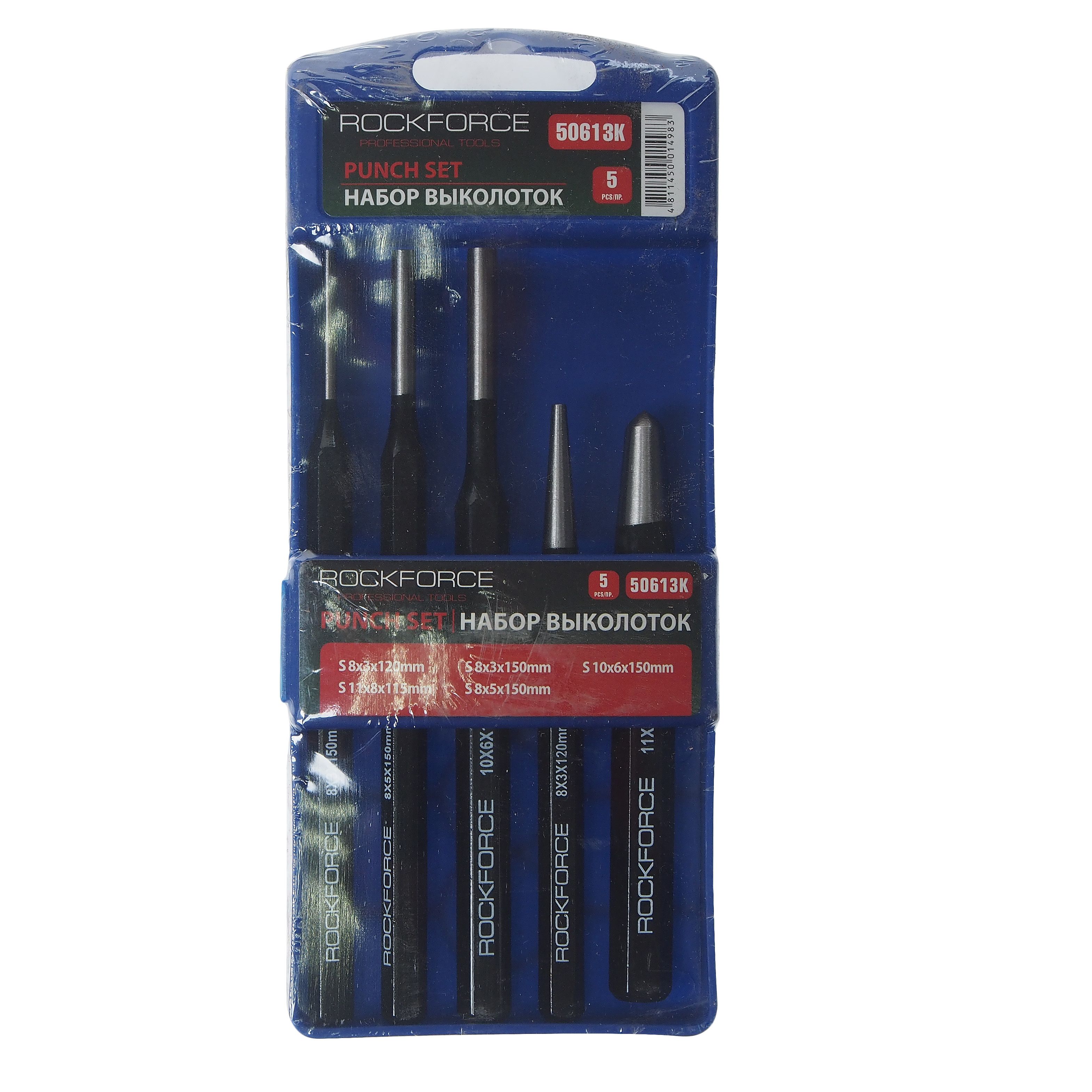 Набор выколоток RockForce, 6 предметов в наборе(2.5×115, 3×120, 4×125, 5×130, 6×145мм; керно:150мм), Используется для извлечения предметов из имеющегося отверстия. Рабочая часть имеет круглое сечение, корпус шестигранный, что обеспечивает надежный хват. Высококачественная хром-ванадиевая сталь способствует длительному сроку службы.
