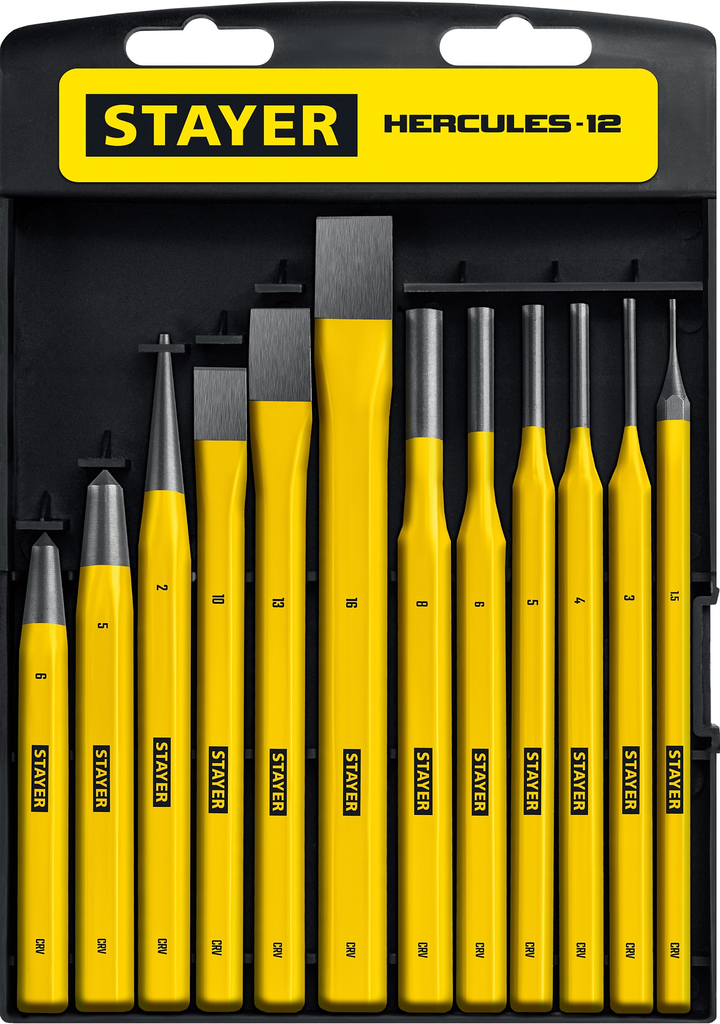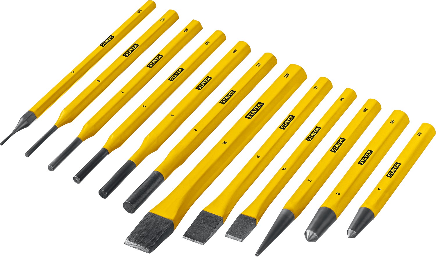 Набор высококачественных зубил и кернеров.