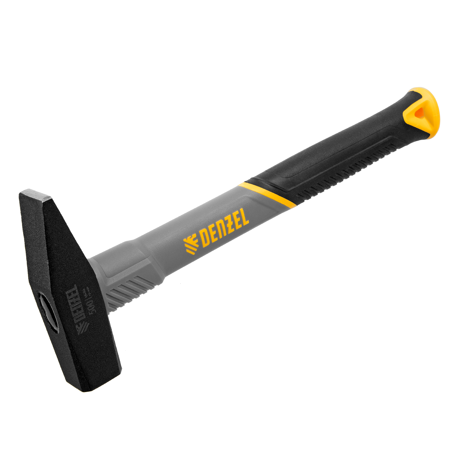 Молоток слесарный кованый Denzel 10485 с квадратным бойком весом 500 г и трехкомпонентной фибергласовой рукояткой с TPR-покрытием предназначен для работы с металлическими заготовками, забивания гвоздей, штырей, дюбелей и другого крепежа. Рукоятка выполнена в эксклюзивном дизайне. Молоток рекомендован для профессионального и домашнего применения.ПреимуществаОптимальная прочность и твердость — голова молотка изготовлена из стали 45 методом ковки, закалена токами высокой частоты, отфрезерована и отшлифована.Деформационная стойкость — твердость рабочих частей бойка составляет 45-50 HRC на глубину до 3 мм.Устойчивость к динамическим нагрузкам — область всада обладает меньшей твердостью, что исключает появление трещин при выполнении работ.Надежная конструкция — усиленное соединение рукоятки с бойком продлевает срок службы инструмента.Комфортное использование — трехкомпонентная фибергласовая рукоятка поглощает вибрации от отдачи, а TPR-покрытие обеспечивает отличное сцепление с ладонью.Работа в сложных условиях — фиберглас не подвержен воздействию влаги и агрессивных сред.