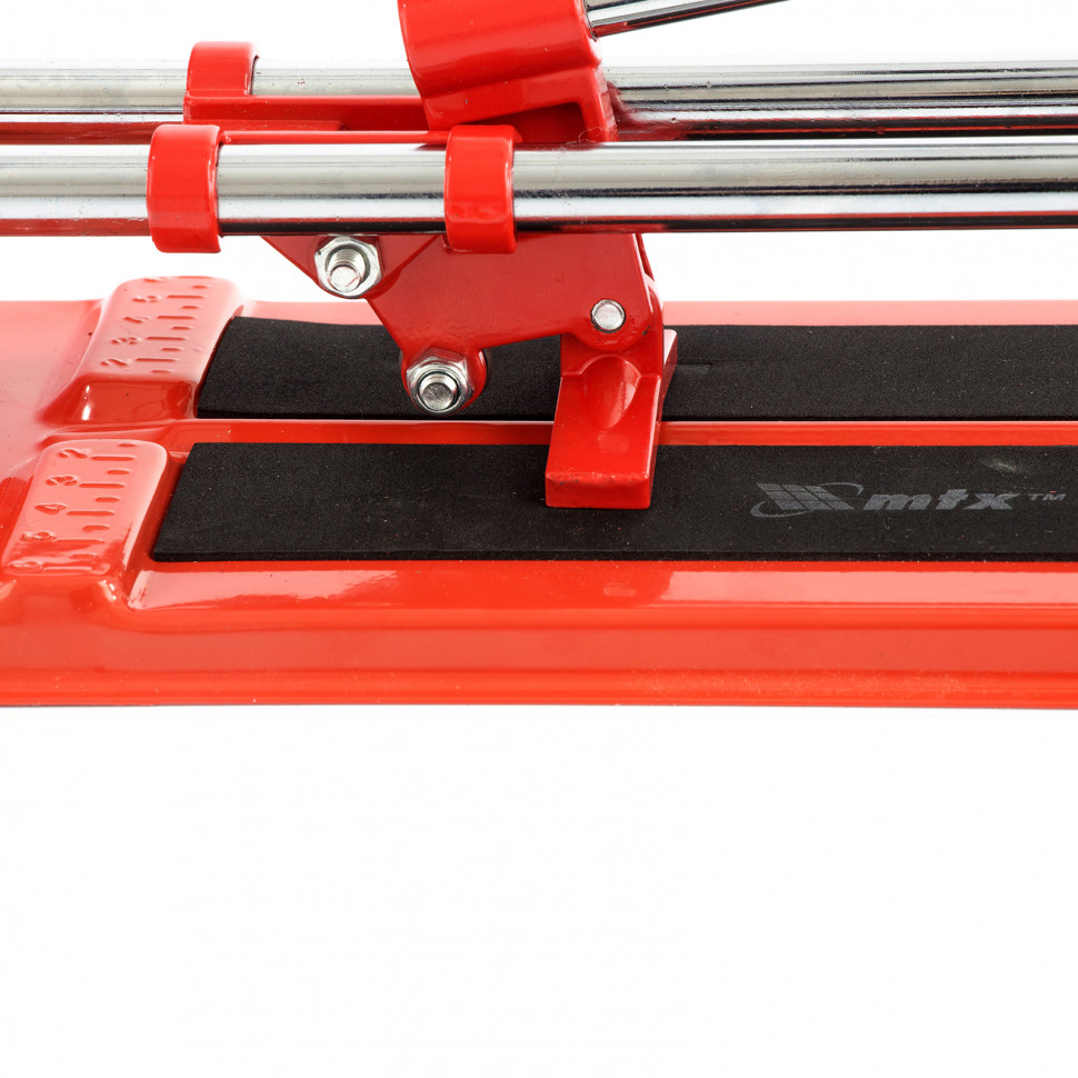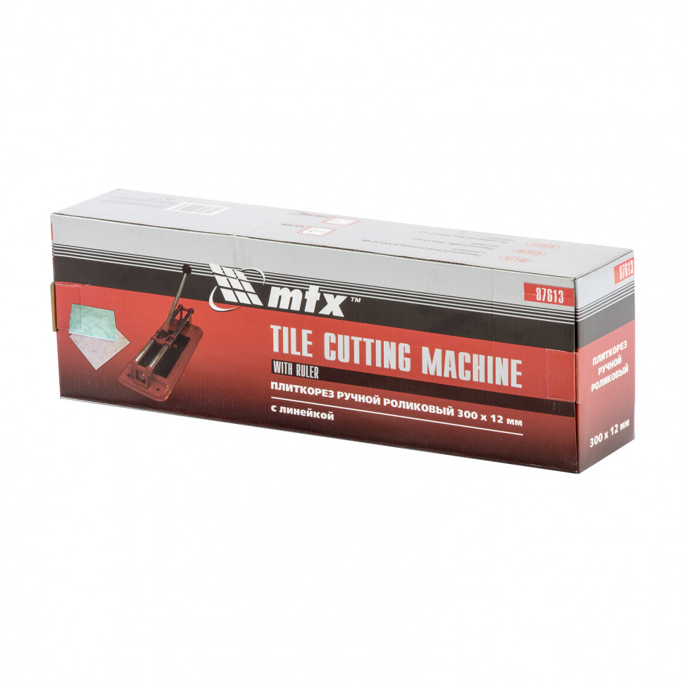 Плиткорез MTX 87613 — инструмент для работы с керамической плиткой размером до 300 х 12 мм. Упрощает и ускоряет резку, позволяет получать ровный и аккуратный срез.ПреимуществаВысокий ресурс — режущий ролик изготовлен из твердосплавного материала ВК-8.Возможность фиксации на поверхности рабочего стола — в основании плиткореза имеются специальные отверстия.Плавный ход — каретка свободно передвигается благодаря двум направляющим из высококачественной инструментальной стали с антикоррозийным покрытием.Высокое качество работы — стальное основание обеспечивает устойчивость плиткореза, мягкие амортизирующие накладки предотвращают сдвиг плитки.Комфортная работа — на рукоятке имеется специальный захват.