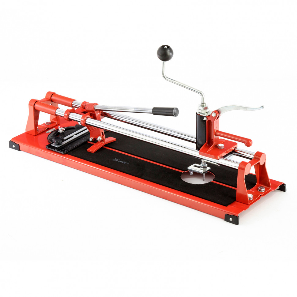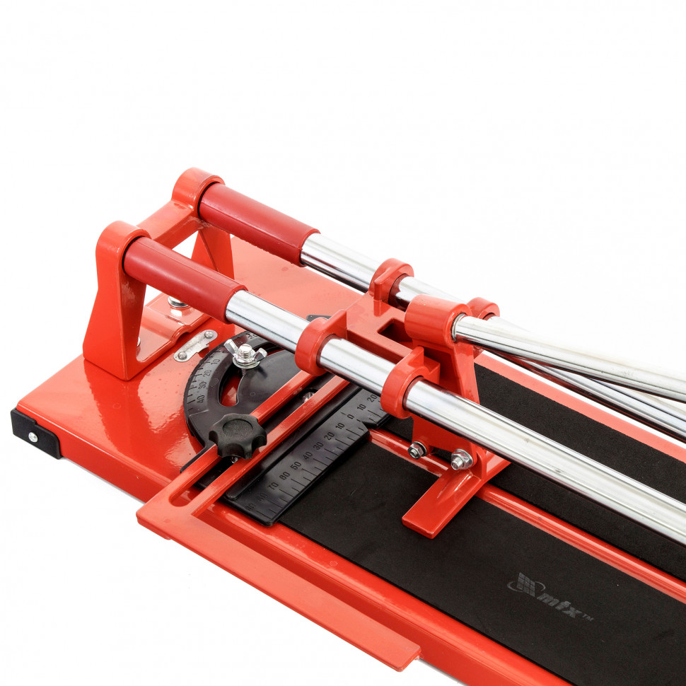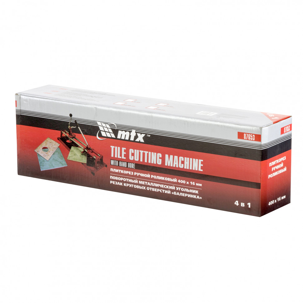 Плиткорез MTX «Балеринка» 87653 с поворотным металлическим угольником предназначен для резки кафельной плитки длиной до 400 мм и толщиной до 16 мм. С помощью встроенной «балеринки» можно вырезать отверстия диаметром 30-80 мм. Инструмент будет полезен во время бытовых облицовочных работ.ПреимуществаЭффективная работа — каретка свободно передвигается по трубчатым направляющим, выполненным из высококачественной хромированной стали с антикоррозийным покрытием.Износостойкость — сменный режущий ролик изготовлен из карбида вольфрама.Неподвижность плитки — плиткорез с широким основанием снабжен мягкими амортизирующими накладками, угольник-угломер дополнительно фиксирует заготовку.Высокая точность выполняемых работ — поворотный угольник-угломер позволяет резать плитку под углом до 45°.Эргономичность — рукоятка с удобным захватом не скользит в руке.