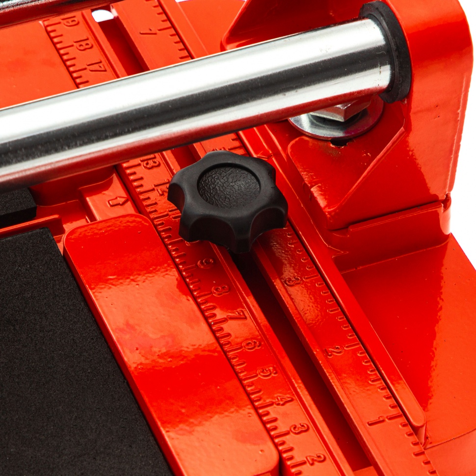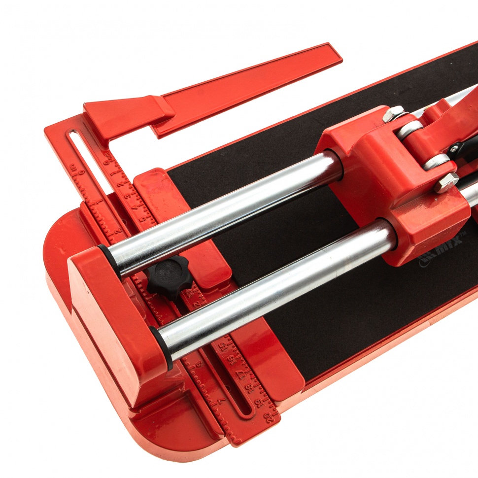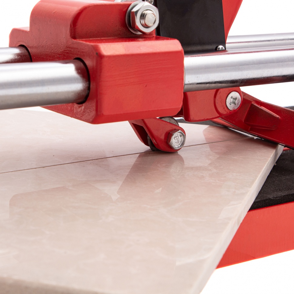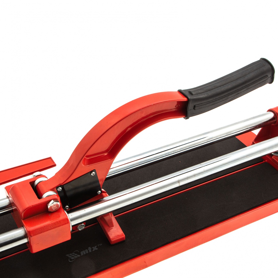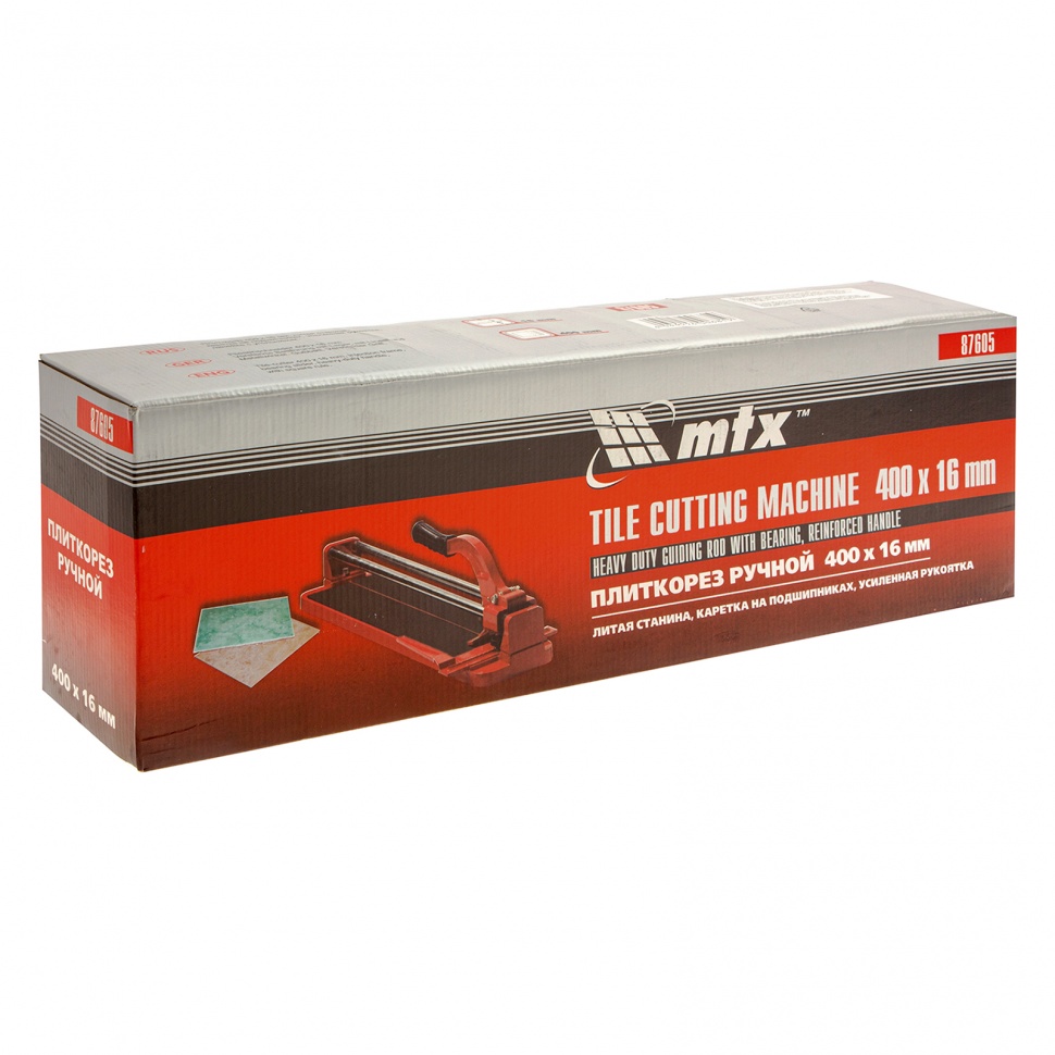 Плиткорез MTX 87605 с литой станиной, кареткой на подшипниках и усиленной рукояткой, используется для резки кафельной плитки размером до 400 х 16 мм. Ходовая каретка представляет собой массивный цельнолитой закрытый корпус, внутри которого размещаются цилиндрические шариковые подшипники, благодаря которым каретка перемещается по направляющим свободно даже при их загрязнении. Отсутствие люфтов в каретке позволяет выполнять рез максимально точно. Инструмент будет полезен мастерам в ходе бытовых облицовочных работ.ПреимуществаДолговечность и надежность — режущий ролик плиткореза выполнен из твердого сплава ВК-8.Защита от ударов — на конце направляющих имеются резиновые амортизаторы.Плавный и свободный ход — цельнолитая закрытая каретка снабжена шарикоподшипниковым механизмом, две трубчатых направляющих из хромированной стали с антикоррозионным покрытием обеспечивают свободный ход каретки по ним в процессе резки.Точность работы — в конструкции устройства имеется металлическая линейка-угольник.Устойчивое основание и неподвижность плитки — плиткорез снабжен цельнолитой станиной из алюминиево-магниевого сплава с обрезиненной поверхностью, а также мягкими амортизирующими накладками.Регулируемый боковой упор (он же линейка-угольник) — удобно осуществлять серийную резку.Надежный хват — рукоятка с прорезиненной накладкой не скользит в руке.