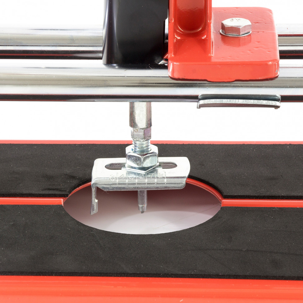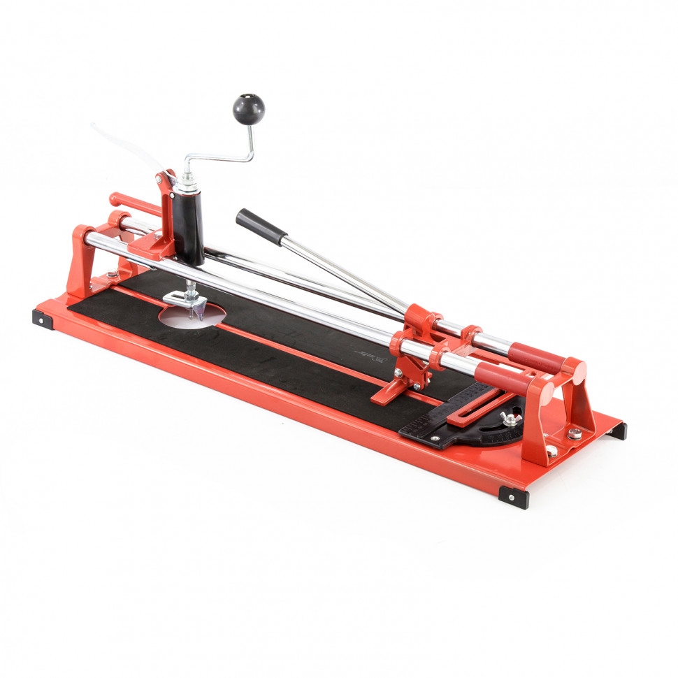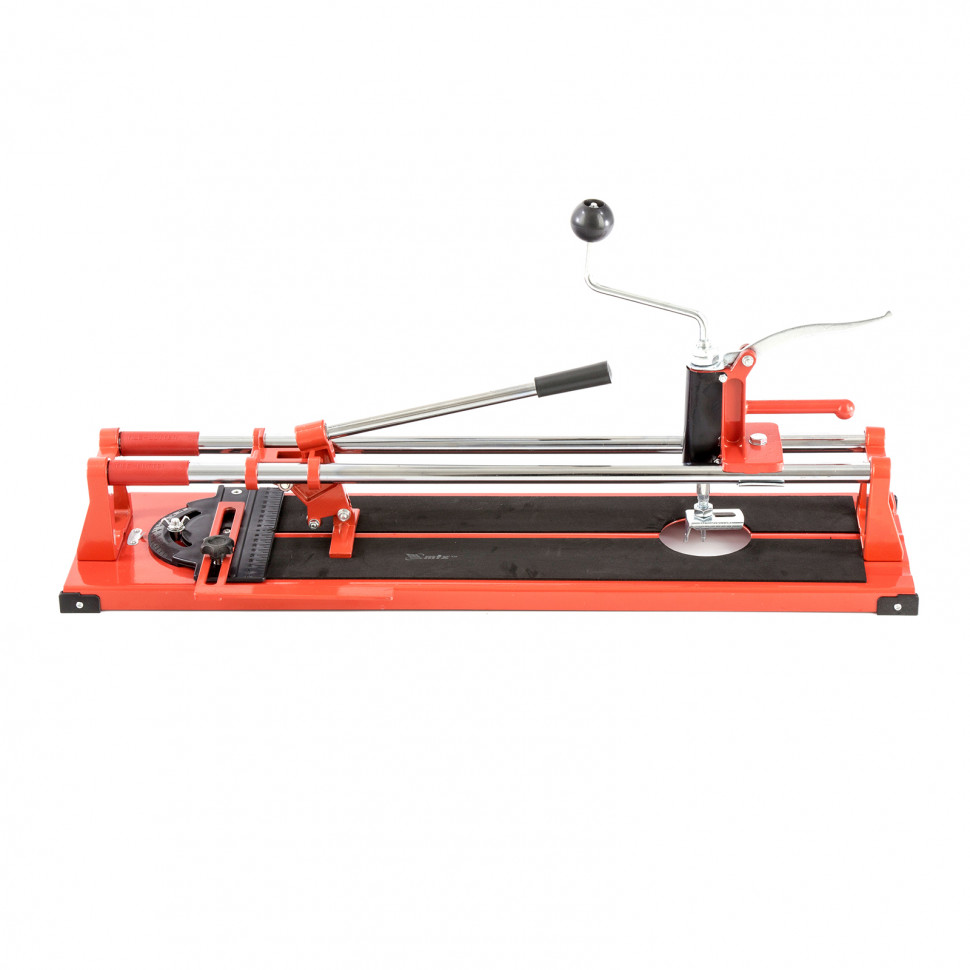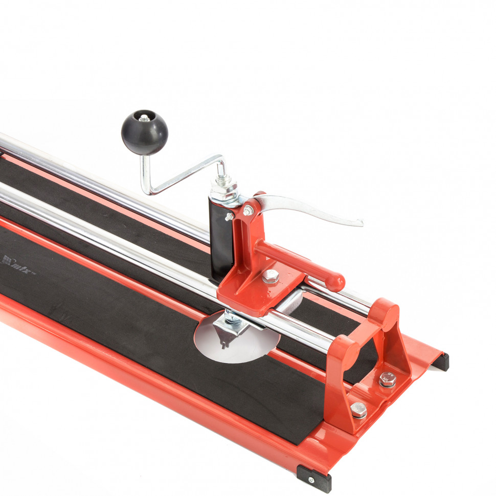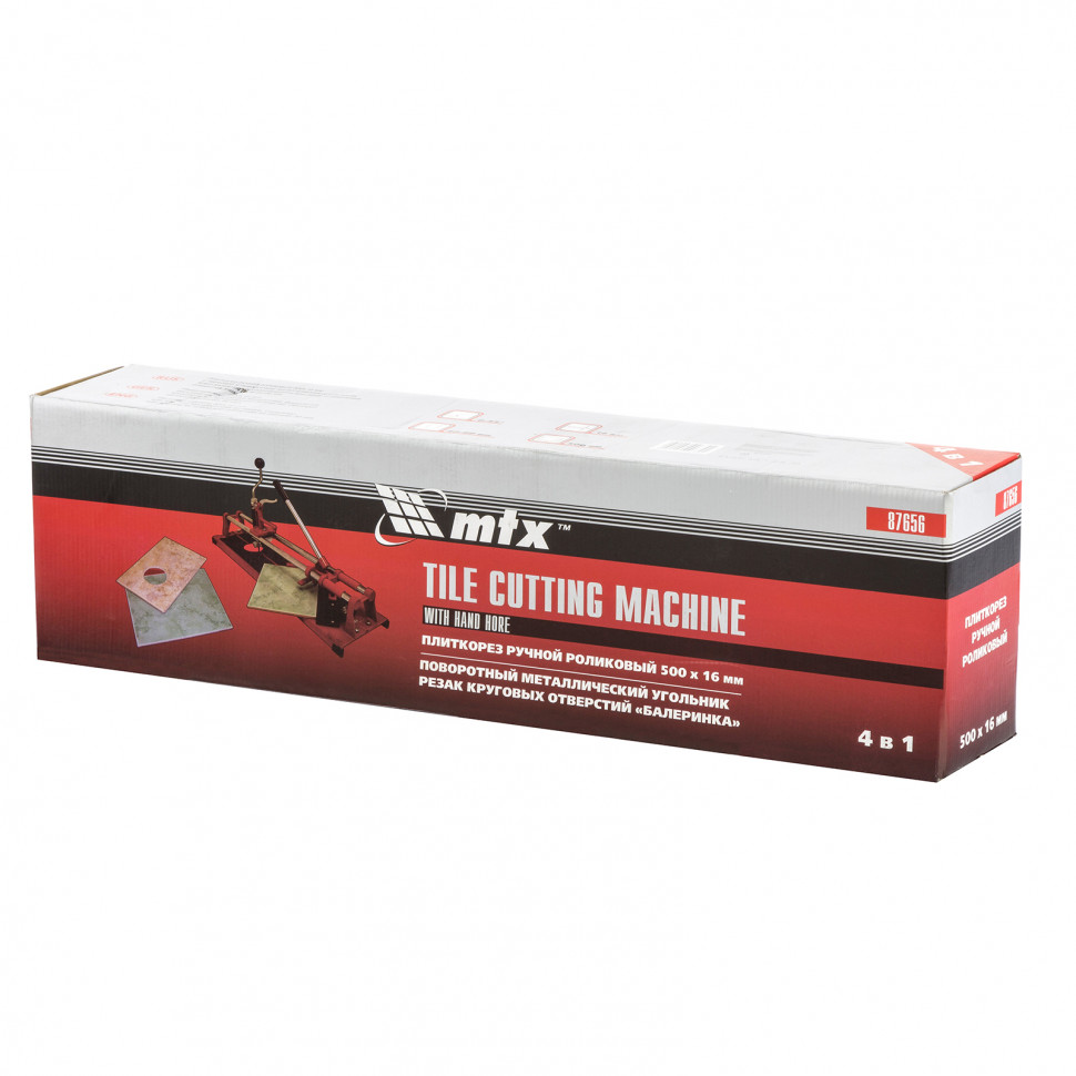 Плиткорез MTX «Балеринка» 87656 с поворотным металлическим угольником предназначен для резки кафельной плитки длиной до 500 мм и толщиной до 16 мм. С помощью встроенной «балеринки» можно вырезать отверстия диаметром 30-80 мм. Инструмент будет полезен во время бытовых облицовочных работ.ПреимуществаЭффективная работа — каретка свободно передвигается по трубчатым направляющим, выполненным из высококачественной хромированной стали с антикоррозийным покрытием.Износостойкость — сменный режущий ролик изготовлен из карбида вольфрама.Неподвижность плитки — плиткорез с широким основанием снабжен мягкими амортизирующими накладками, угольник-угломер дополнительно фиксирует заготовку.Высокая точность выполняемых работ — поворотный угольник-угломер позволяет резать плитку под углом до 45°.Эргономичность — рукоятка с удобным захватом не скользит в руке.