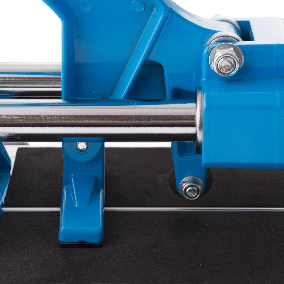 Плиткорез ручной Барс 87580 с кареткой на подшипниках, усиленной рукояткой и облегченной алюминиевой станиной, предназначен для резки плитки из кафеля и керамогранита длиной до 600 мм и толщиной до 14 мм. Благодаря регулируемому боковому упору удобен для серийной резки. Инструмент подходит для бытового и профессионального использования, оптимален для выполнения больших объемов облицовочных работ.ПреимуществаВысокий ресурс — режущий ролик изготовлен из твердого сплава ВК-8.Прочная и долговечная конструкция — трубчатые направляющие выполнены из хромированной стали увеличенной толщины и покрыты антикоррозийным составом.Высокое качество выполняемых работ — благодаря двум направляющим, цилиндрическим подшипникам и отсутствию люфтов каретка перемещается свободно и плавно.Надежная фиксация плитки — цельнолитая станина из алюминиевого сплава обеспечивает устойчивость плиткореза, резиновые амортизаторы предотвращают удар каретки о стойку.Резка под углом — производитель предусмотрел металлическую линейку с угломером.Комфортная работа — рукоятка с обрезиненным покрытием не выскальзывает из руки.