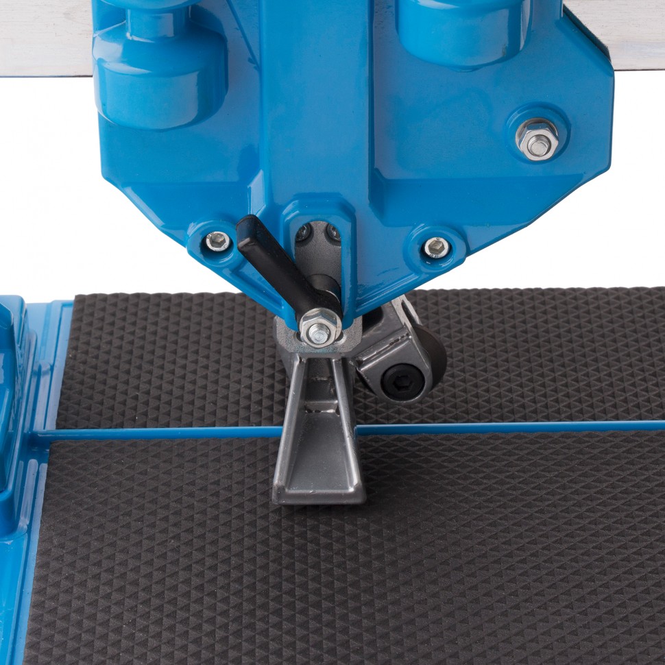 Ручной монорельсовый плиткорез Барс 87590 с ходовой кареткой, с 4 регулируемыми подшипниками из 9 и литой станиной, применяется для резки плитки размером до 600 х 14 мм. Плиткорез оснащен усиленным стальным монорельсом и опорами. Мощный разделитель позволяет эффективно резать любую плитку: керамическую и керамогранитную.ПреимуществаВысокое качество выполняемых работ — ходовая каретка с 9 подшипниками (4 регулируемых) перемещается по рельсу свободно и плавно, режущий ролик из твердого сплава ВК-8 мягко и ровно режет материалы.Прочная и устойчивая конструкция — инструмент имеет литую станину из магниевого сплава.Удобная эксплуатация — конструкция плиткореза позволяет производить разлом в любой точке поверхности плитки.Резка плитки под углом до 60° — производитель предусмотрел металлическую линейку с угломером.Быстрая смена режимов работы — специальный переключатель позволяет переводить ролик из положения резки в положение плитколома.Надежная фиксация плитки — амортизирующие накладки не дают ей смещаться во время реза.