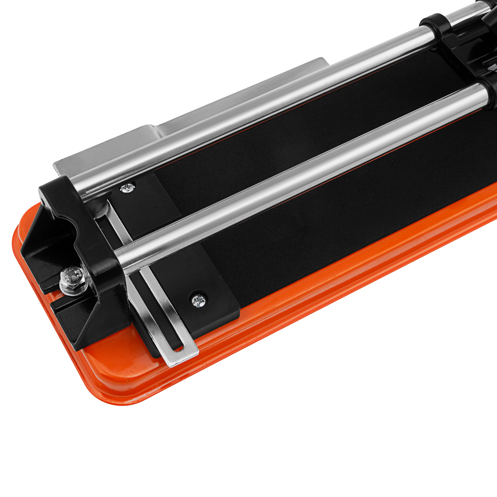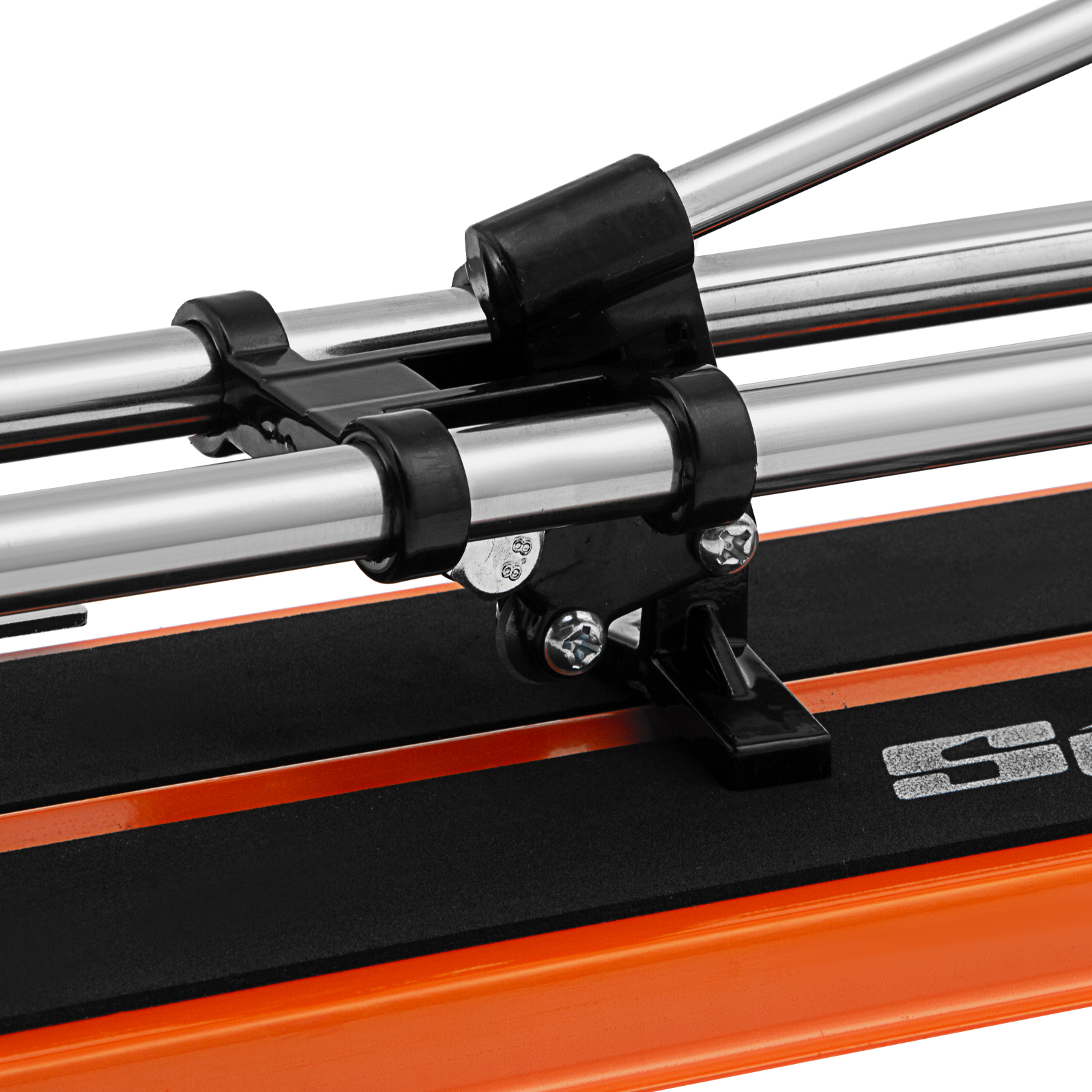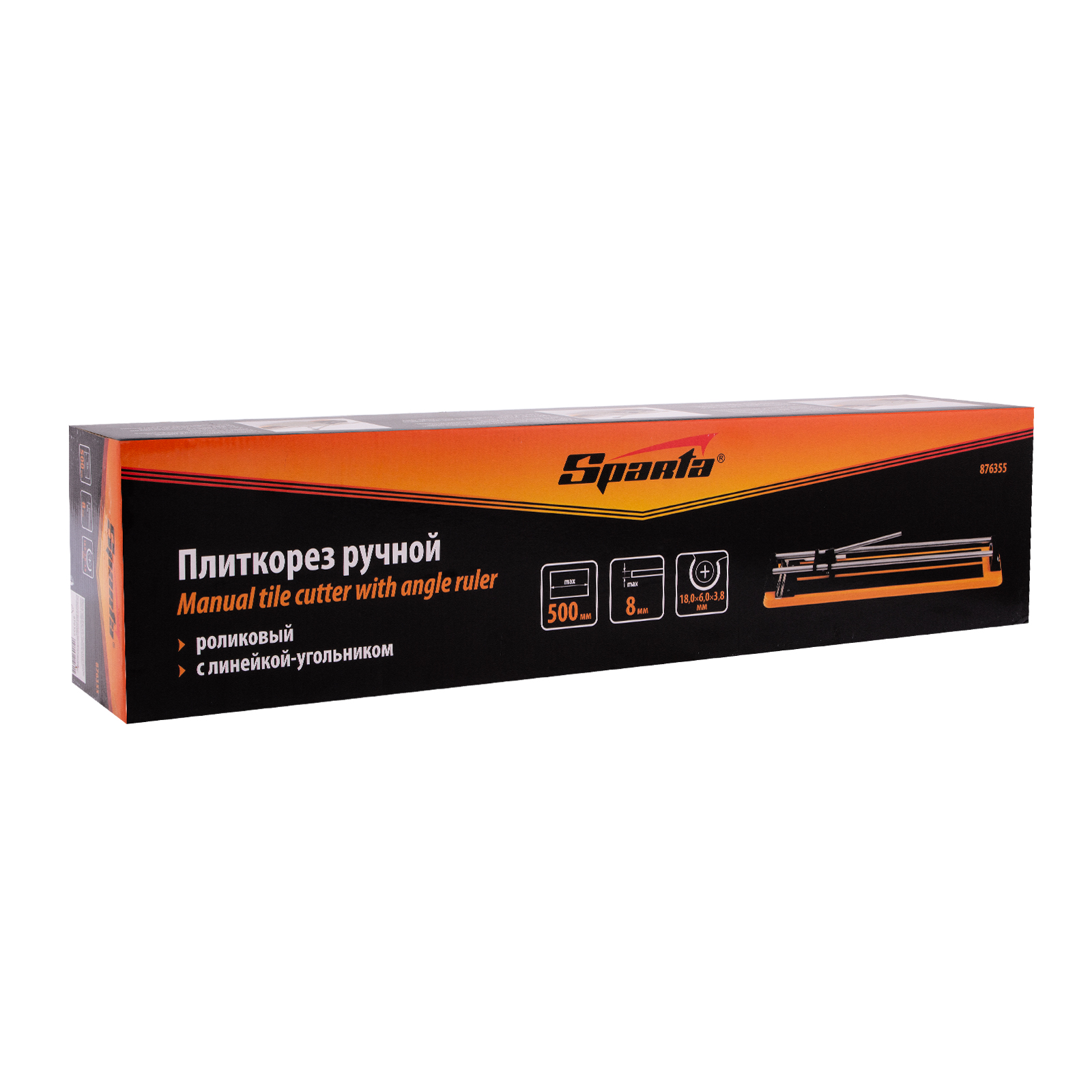 Роликовый плиткорез Sparta 876355 — ручной инструмент для резки керамической плитки длиной до 500 мм и толщиной до 8 мм. Используется во время проведения отделочных работ.ПреимуществаВысокий ресурс — режущий ролик из карбида вольфрама отличается износостойкостью, цельностальные направляющие хромированы для защиты от коррозии.Точность выполняемых работ — металлическая линейка-угольник облегчает позиционирование плитки на станине, твердосплавный режущий ролик обеспечивает аккуратный рез.Комфортная эксплуатация — мягкие амортизирующие накладки препятствуют скольжению плитки.