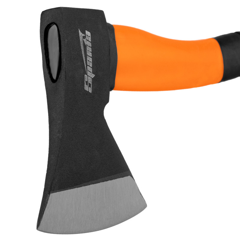 Топор Sparta 21637 с рабочей частью весом 600 г и фибергласовым топорищем рассчитан на рубку, тесание и колку древесины любых пород. Рабочая кромка, заточенная под углом 20-30°, легко врезается в древесину. Инструмент пригодится для бытовых работ: заготовки дров, рубки сучьев, небольших бревен, пеньков и т.д.ПреимуществаПрочность и высокий ресурс — полотно выполнено из стали 45 и закалено до твердости 35-40 HRC на высоту до 25 мм от режущей кромки.Долговечность — фибергласовая рукоятка не разрушается под воздействием окружающей среды.Эргономичность — изогнутая обрезиненная рукоятка не выскальзывает из рук.Легкий вес полотна 600 г — длительная работа топором не вызывает дискомфорт.Компактность — благодаря небольшой длине рукоятки 375 мм инструмент легко поместится в переноску для инструмента или рюкзак.
