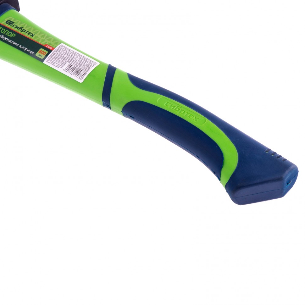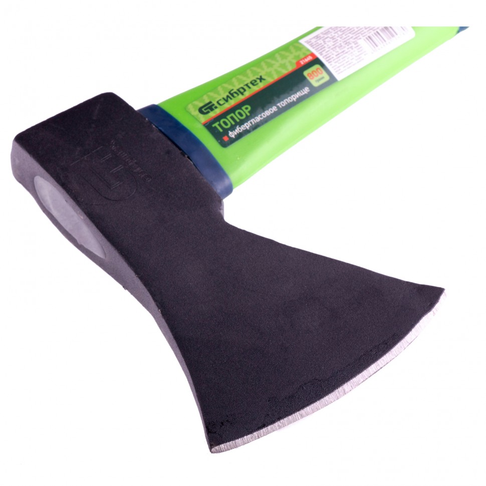 Топор Сибртех 21645 с рабочей частью весом 800 г и фибергласовым топорищем позволяет осуществлять рубку, тесание и колку твердой или мягкой древесины. Он будет полезен на дачном и сельскохозяйственном участке при необходимости подготовки дров, рубки кустов, сучьев и других работ. Полотно оснащено полукруглой режущей кромкой с углом заточки 20-30 градусов, поэтому топором легко работать.ПреимуществаПолотно из стали 45 — топор оптимально подходит для непрофессионального применения.Прочность — полотно закалено до твердости 48-57 HRC (на высоте до 25 мм от режущей кромки).Заточенное лезвие — инструмент полностью готов к использованию после приобретения.Качественное топорище — фиберглас устойчив к негативным воздействиям окружающей среды, имеет механическую прочность и гасит вибрации.Надежный хват — небольшой изгиб и обрезиненные вставки снижают риск проскальзывания топора в руках.Комфортная работа — малый вес полотна 800 г позволяет уменьшить нагрузку на руки.Компактность — топор легко поместится в переноску или рюкзак благодаря рукоятке длиной 375 мм.