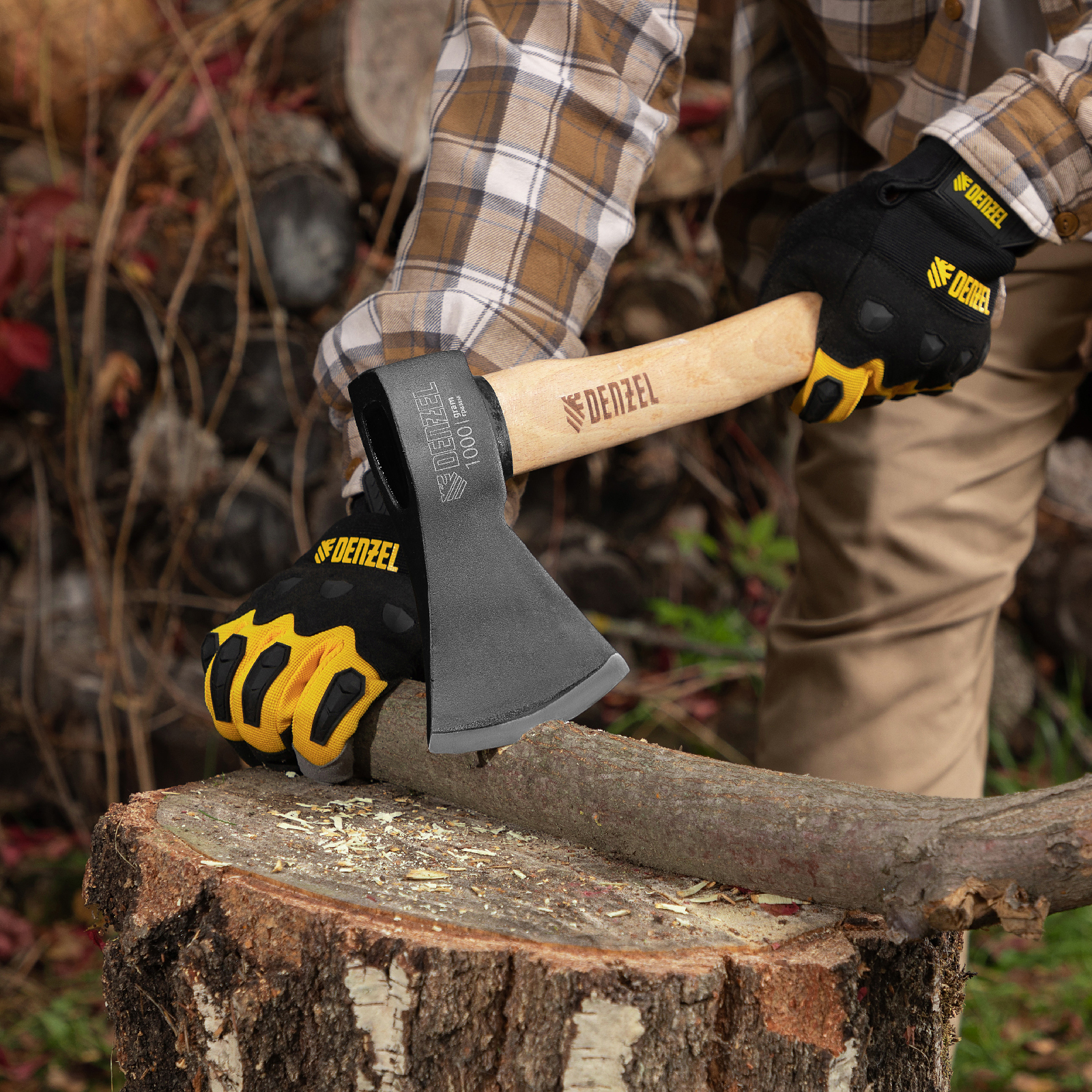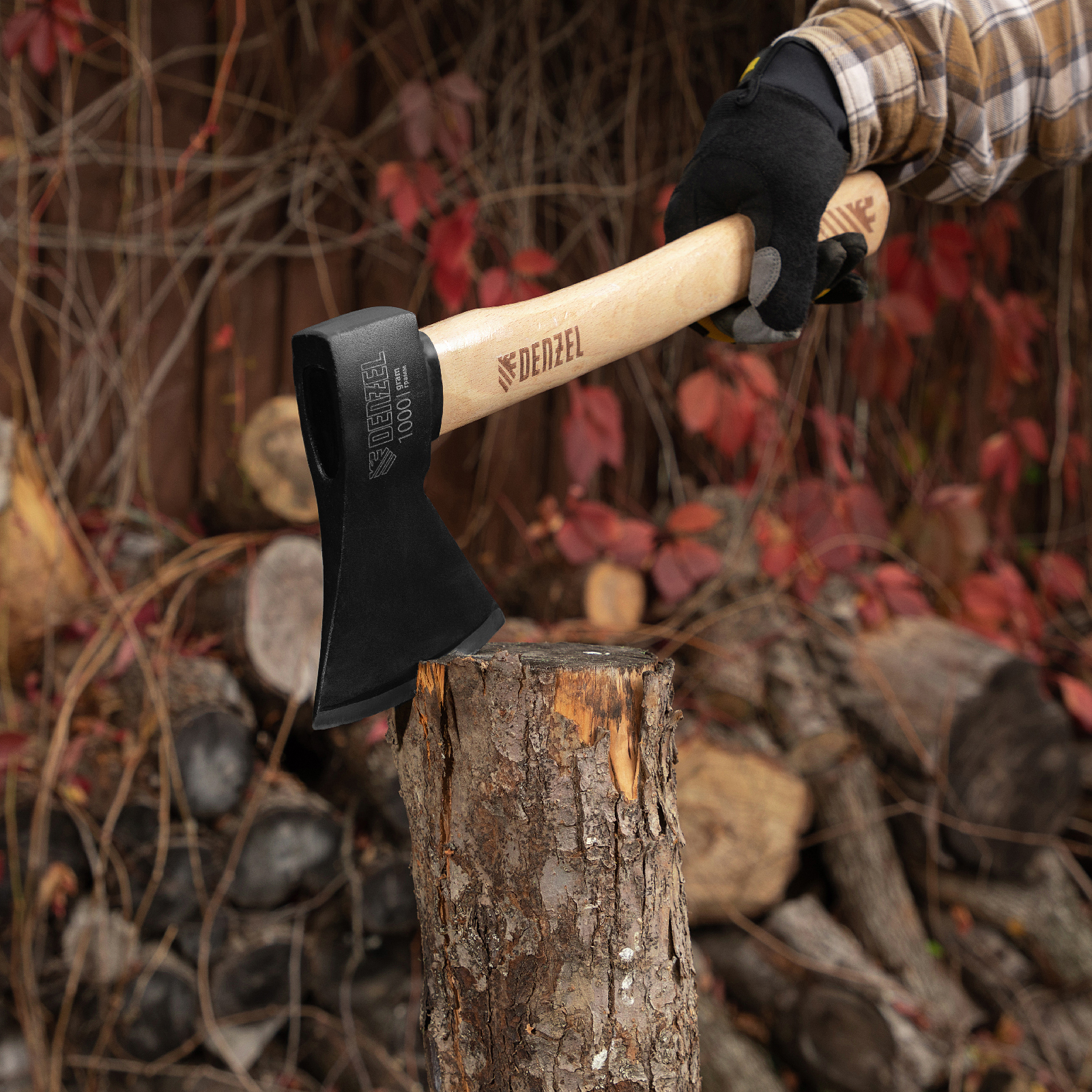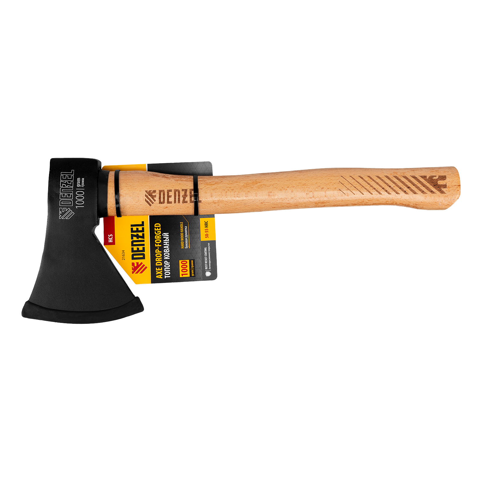 Кованый плотницкий топор Denzel 21634 с буковым топорищем и рабочей частью весом 1000 г предназначен для рубки и тесания древесины. Выдерживает высокие нагрузки, поэтому идеально подходит для работы в тяжелых условиях.ПреимуществаУстойчивость к нагрузкам — голова топора изготовлена из высокоуглеродистой стали и закалена до твердости 50-55 HRC.Надежная защита от коррозии — на головку нанесено черное эмалевое покрытие.Прочность и долговечность — буковая рукоятка расклинена и дополнительно зафиксирована эпоксидным клеем, что обеспечивает надежную фиксацию головки и в целом надежность всего инструмента.Стойкость к рассыханию и воздействию влаги — топорище покрыто защитным лаком.Комфортная работа — инструмент отличается сбалансированной эргономичной формой и весом.