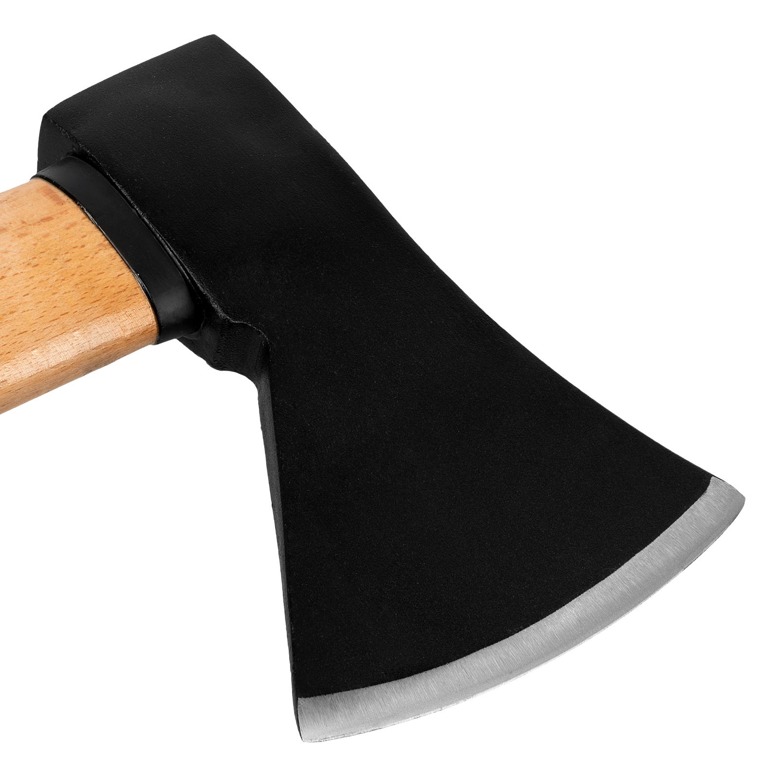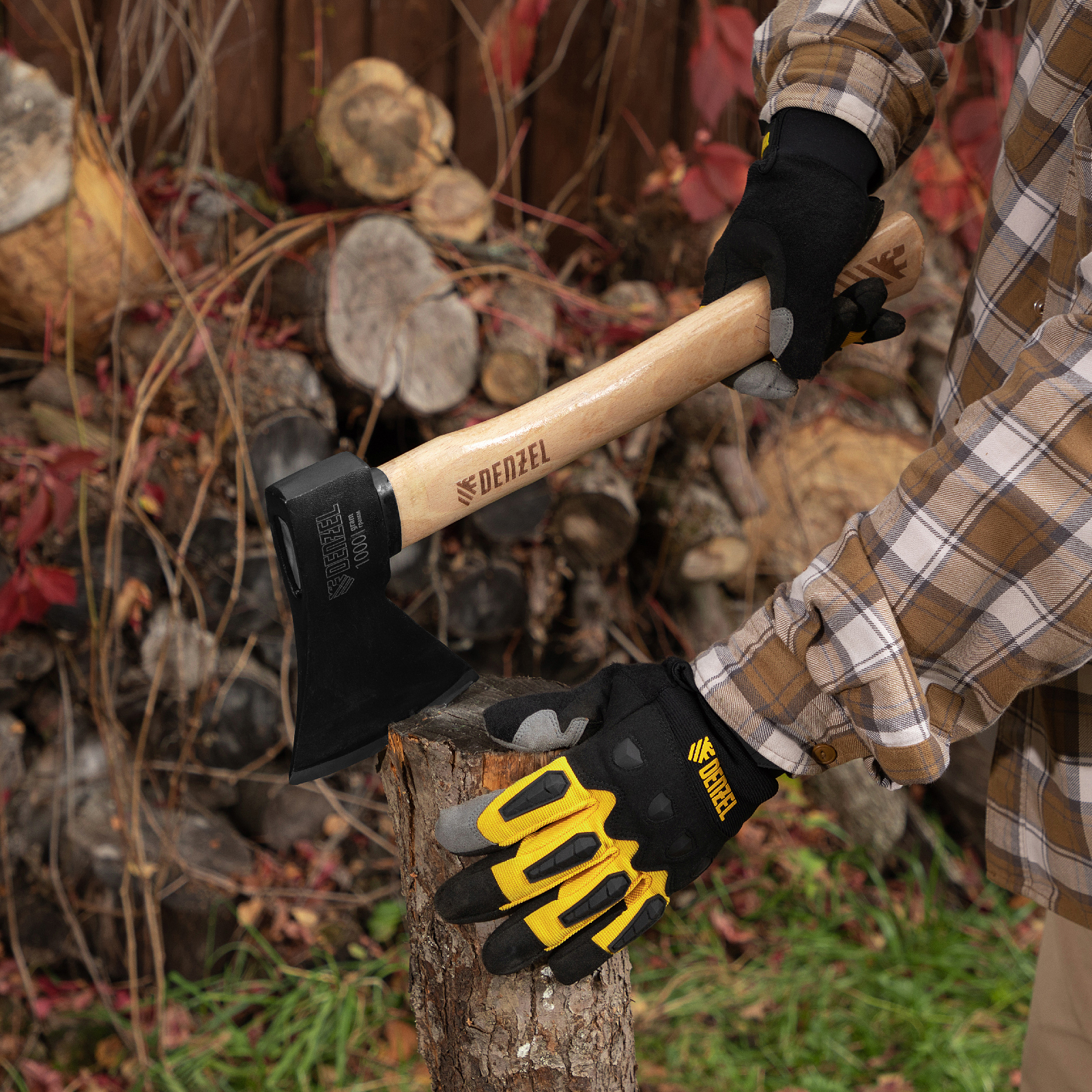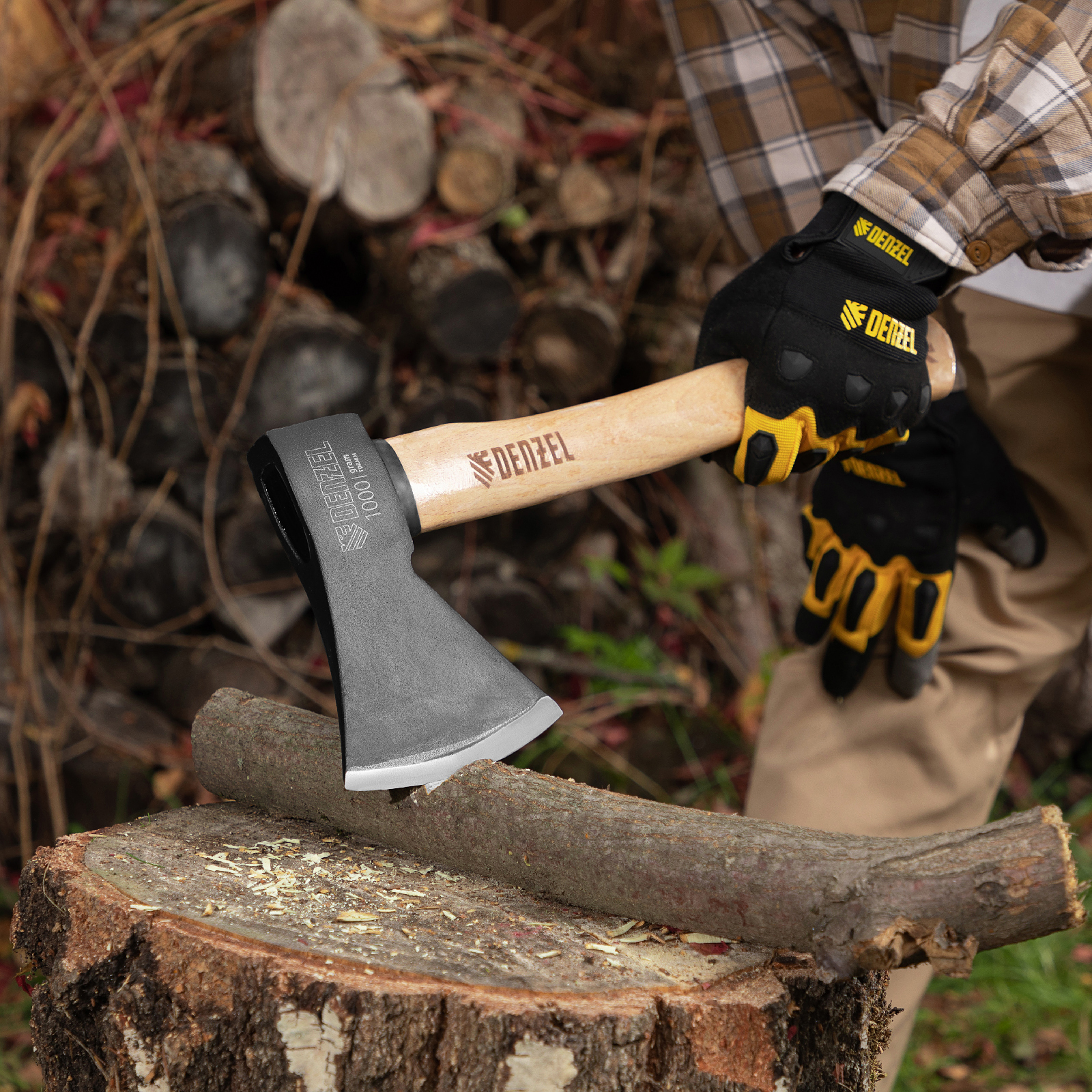 Кованый плотницкий топор Denzel 21634 с буковым топорищем и рабочей частью весом 1000 г предназначен для рубки и тесания древесины. Выдерживает высокие нагрузки, поэтому идеально подходит для работы в тяжелых условиях.ПреимуществаУстойчивость к нагрузкам — голова топора изготовлена из высокоуглеродистой стали и закалена до твердости 50-55 HRC.Надежная защита от коррозии — на головку нанесено черное эмалевое покрытие.Прочность и долговечность — буковая рукоятка расклинена и дополнительно зафиксирована эпоксидным клеем, что обеспечивает надежную фиксацию головки и в целом надежность всего инструмента.Стойкость к рассыханию и воздействию влаги — топорище покрыто защитным лаком.Комфортная работа — инструмент отличается сбалансированной эргономичной формой и весом.