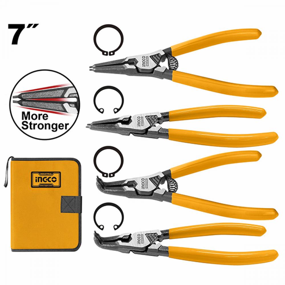Набор щипцов для снятия стопорных колец INGCO HCCPS26180 используется для разжимания и сжатия внешних и внутренних стопорных колец который широко используется в частных автомастерских, на станциях ТО или в гараже.