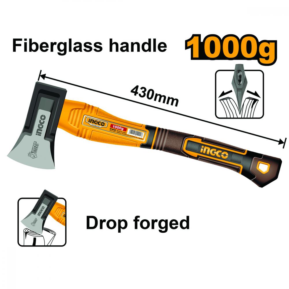 Топор-колун с фибергласовой рукояткой 1000 гр. SUPER INGCO HAX0811000F практичный инструмент небольшого размера, который можно использовать как в бытовых, так и в походных условиях.