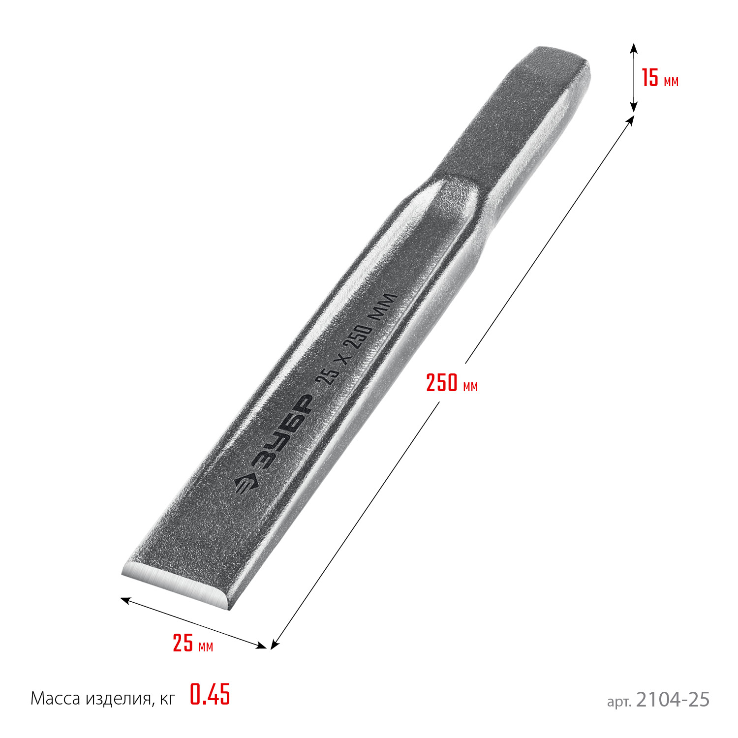 Усиленное зубило. Двутавровый профиль для усиления конструкции. Хромированное покрытие защищает от коррозии.