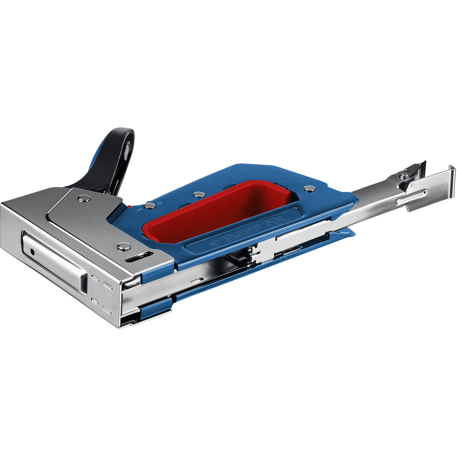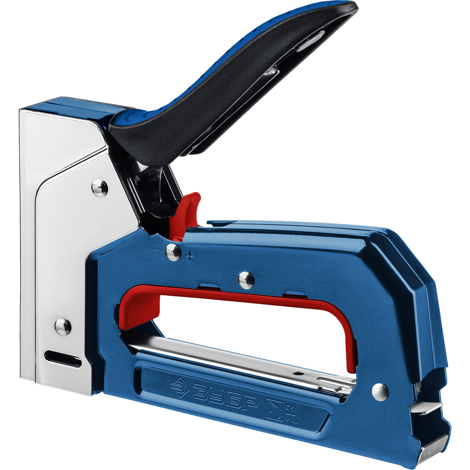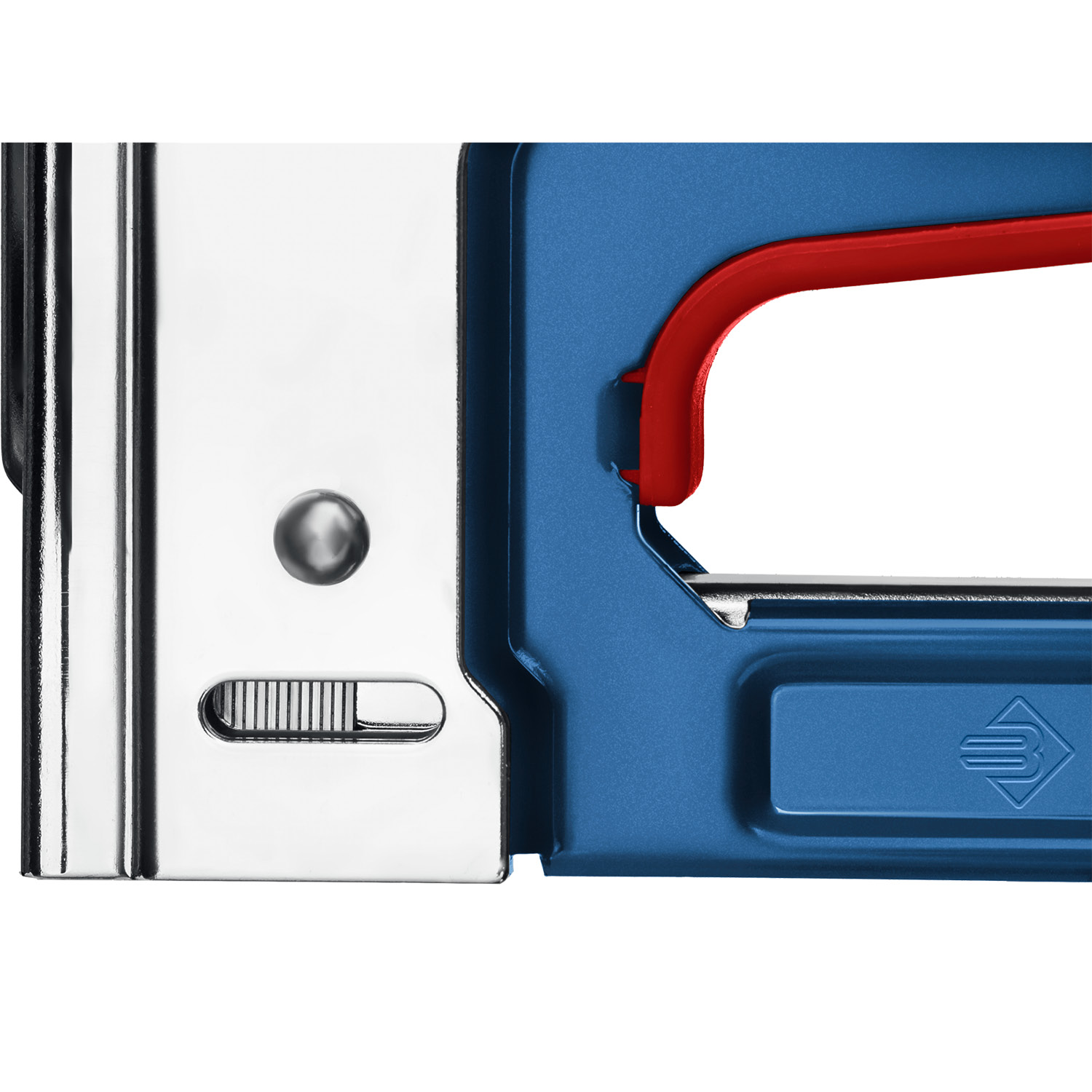 Профессиональный компактный мощный степлер с ударным механизмом рессорного типа, увеличенная мощность, удар без отдачи. Двухпозиционная регулировка силы удара. Стальной усиленный корпус. Рукоятка с системой фиксации и резиновой накладкой, быстрая и безопасная загрузка скоб снизу.