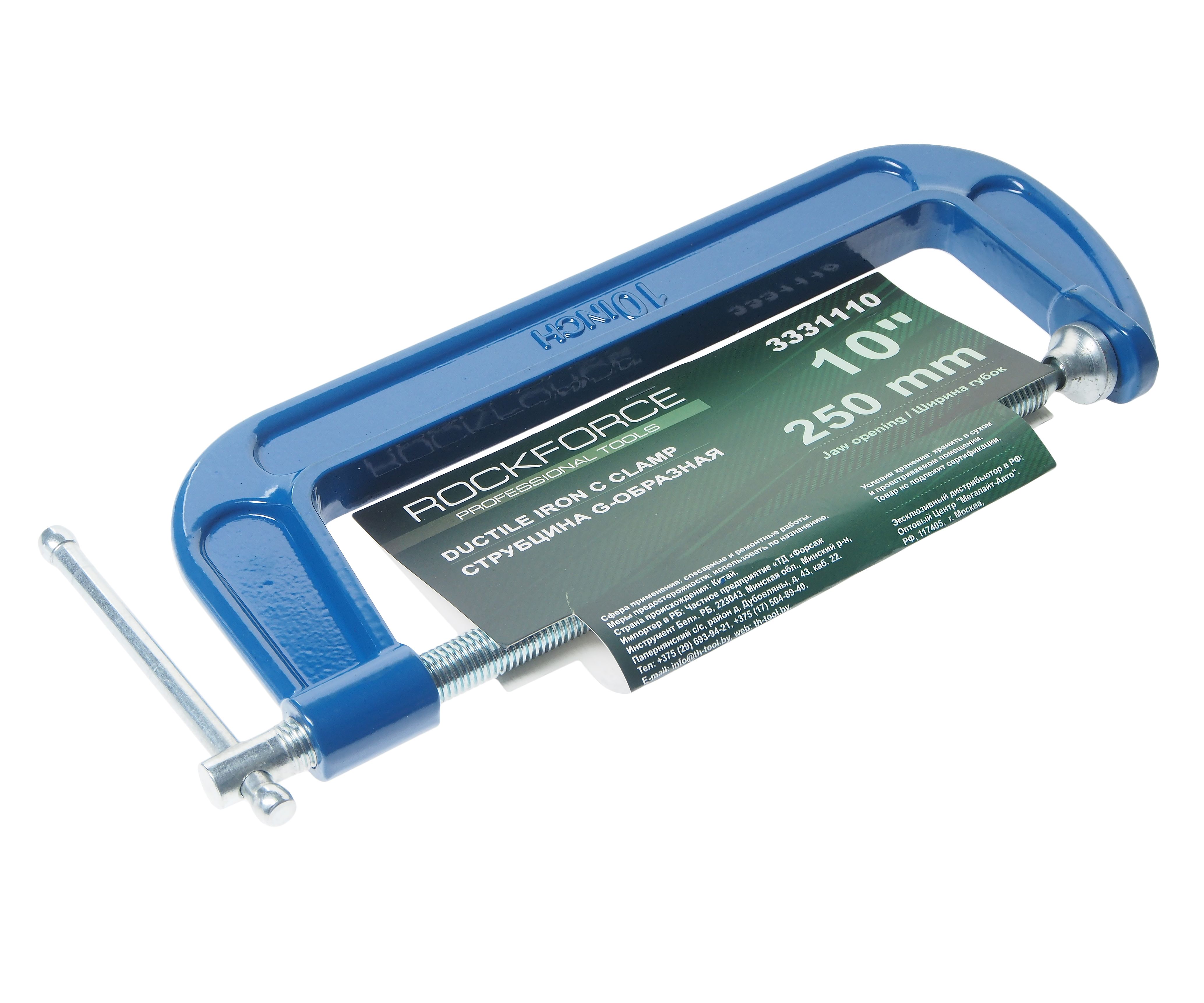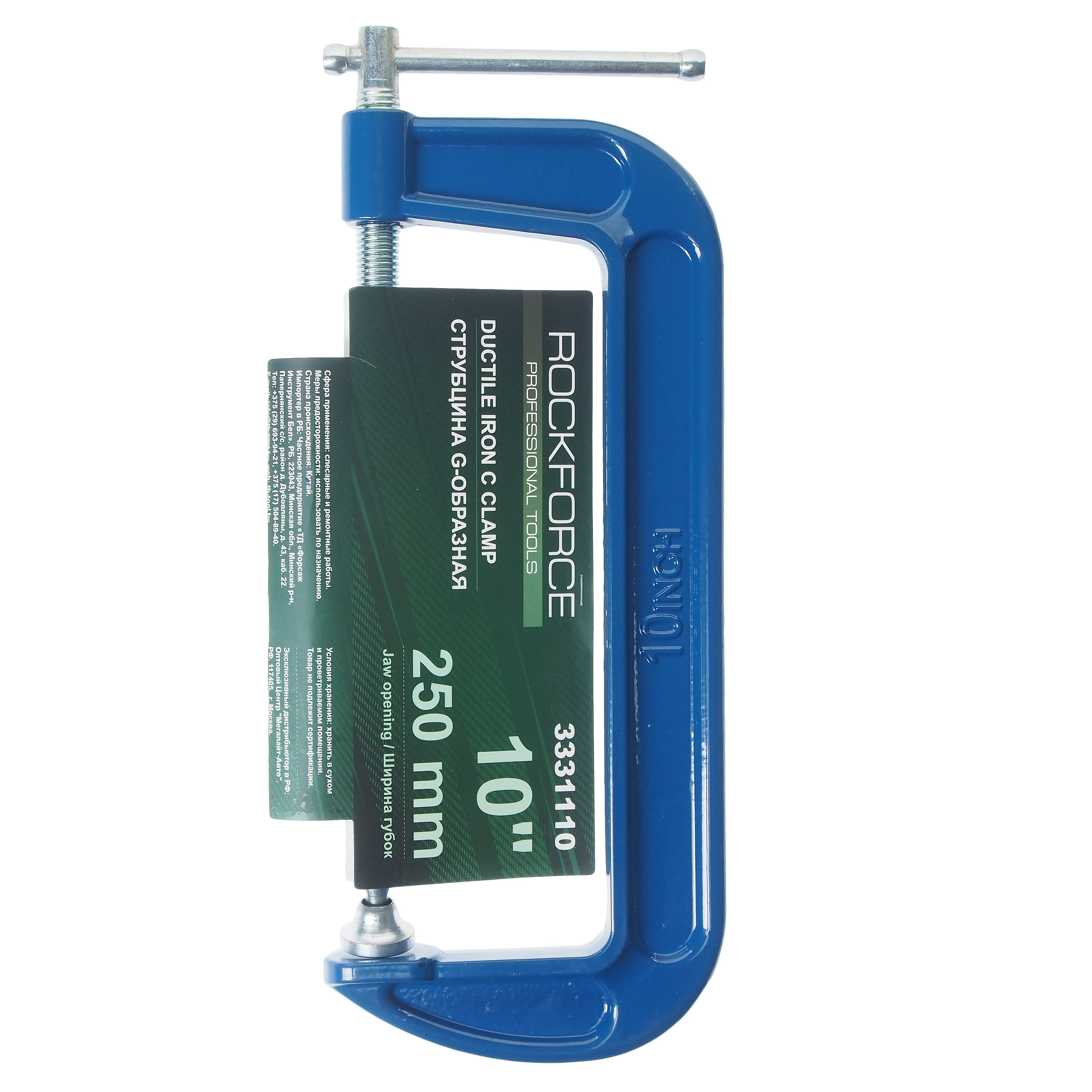 Струбцина RockForce G-образная «Profi» 10«-250мм (вес-3.4кг) обеспечивает оптимальный размер и высокую прочность, которая позволяет выполнять работы с комфортом, вне зависимости от внешних условий. Преимущество струбцины, в ее эргономичности винта, вращение которого обеспечивает простую затяжку инструмента и быструю смену ширины зева.