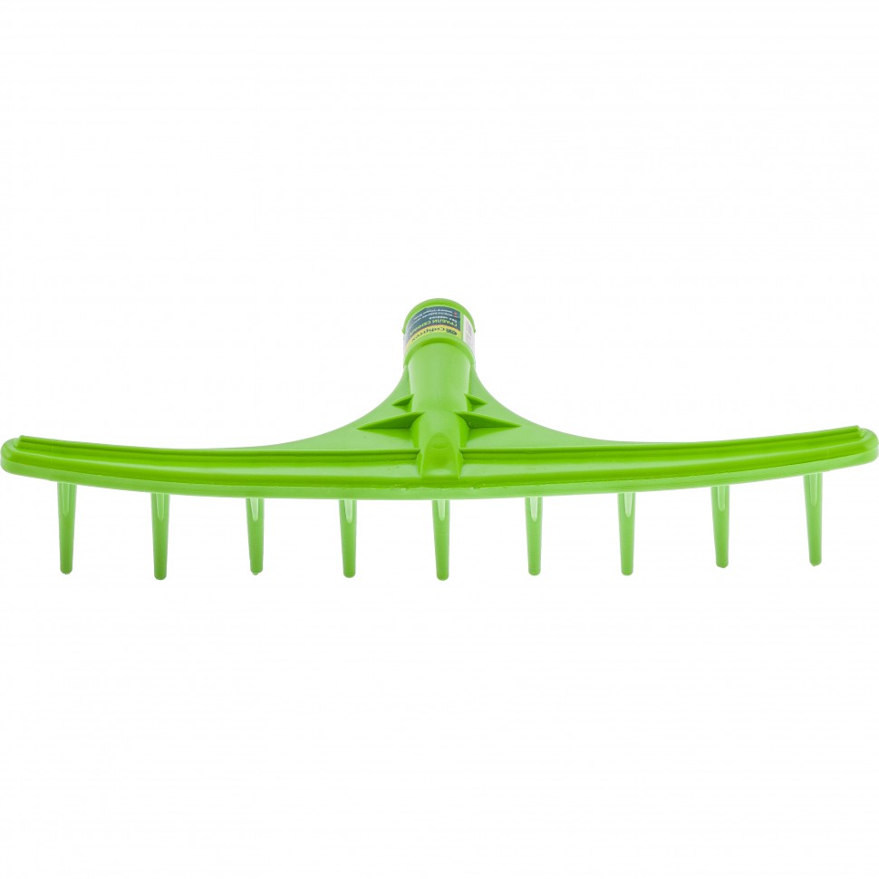 Сенные пластиковые грабли Сибртех 61718 с 9 круглыми зубьями и шириной рабочей части 475 мм, без черенка, — садовый инвентарь, предназначенный для сбора скошенной травы и сена. Черенок приобретается отдельно — можно подобрать наиболее подходящий, совместимый с тулейкой диаметром 30 мм. Преимущества Долговечность — грабли изготовлены из высококачественного полипропилена, устойчивого к перепадам температур и воздействию ультрафиолета. Прочность — благодаря утолщенному профилю зубьев и ребрам жесткости грабли выдерживают большие нагрузки и не ломаются. Малый вес 260 г — граблями можно долго работать без ощущения усталости.