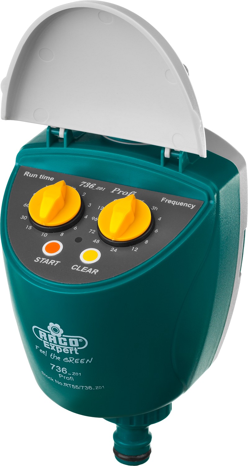 Системы контроля за поливом RACO это: пониженный объем потребляемой воды, автоматический контролируют время полива, продолжительный срок службы, легкое программирование.