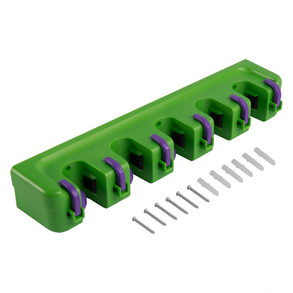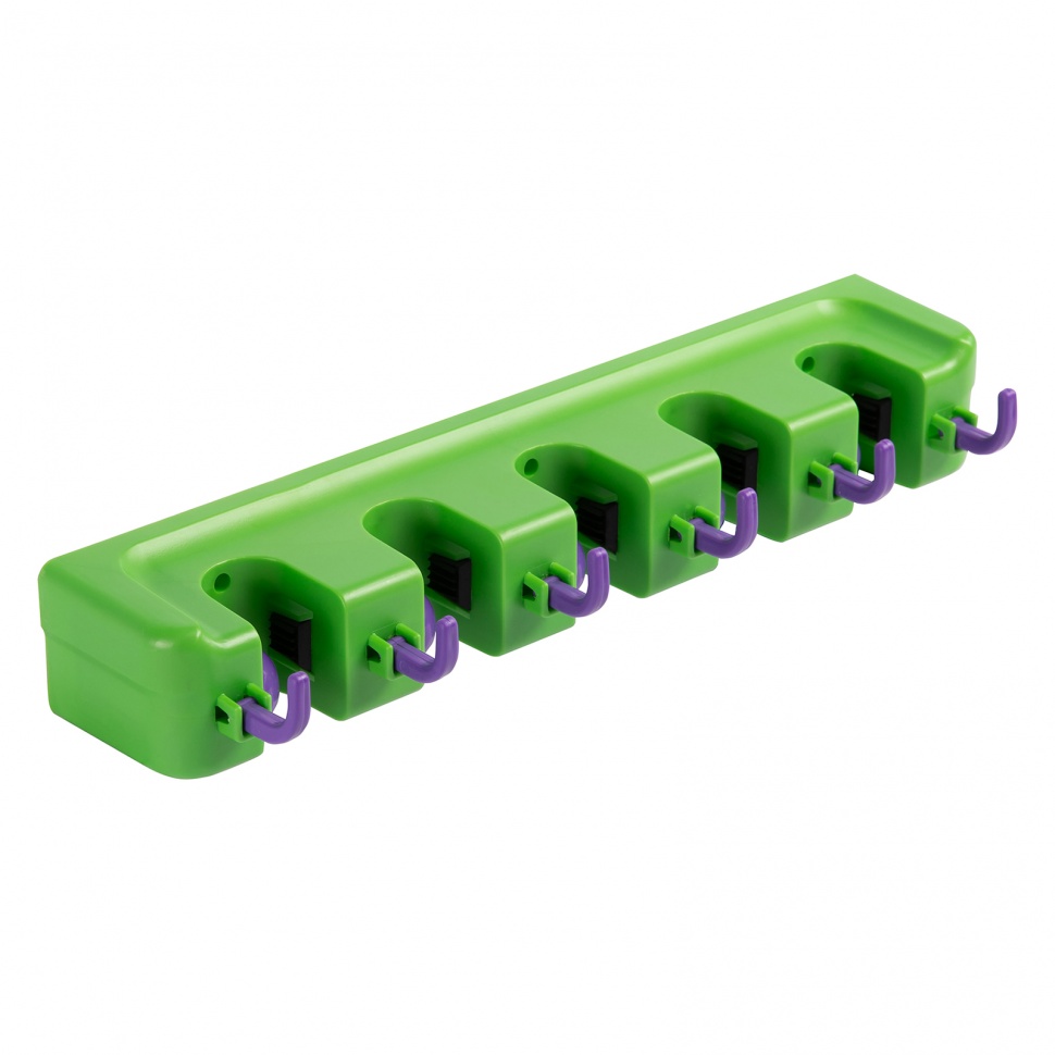 Пластиковый настенный держатель Palisad 68300 с 5 ячейками и 6 крюками используется для хранения садового-огородного инструмента. Позволяет разместить инвентарь в подвешенном состоянии и упорядочить рабочее пространство. Подвесное хранение исключает риск поломки инструментов. На роликах можно разместить рабочий инвентарь, а на крючках — мелкие бытовые предметы.ПреимуществаПродуманная конструкция — подвижные самозажимные ролики позволяют подвешивать инструменты без отверстия в рукоятке.Крепкий захват — ролики имеют обрезиненную поверхность, поэтому предметы не выпадают.Прочность и долговечность — ячейки и зажимы из ПВХ, крюки и основание из полистирола устойчивы к перепадам температур.Размещение нескольких инструментов — держатель имеет 6 крюков и 5 ячеек.Надежность — держатель выдерживает нагрузки до 25 кг, ролики — до 5 кг, крюки — до 3 кг.Быстрый монтаж — в комплект входит набор крепежа для установки на стену.