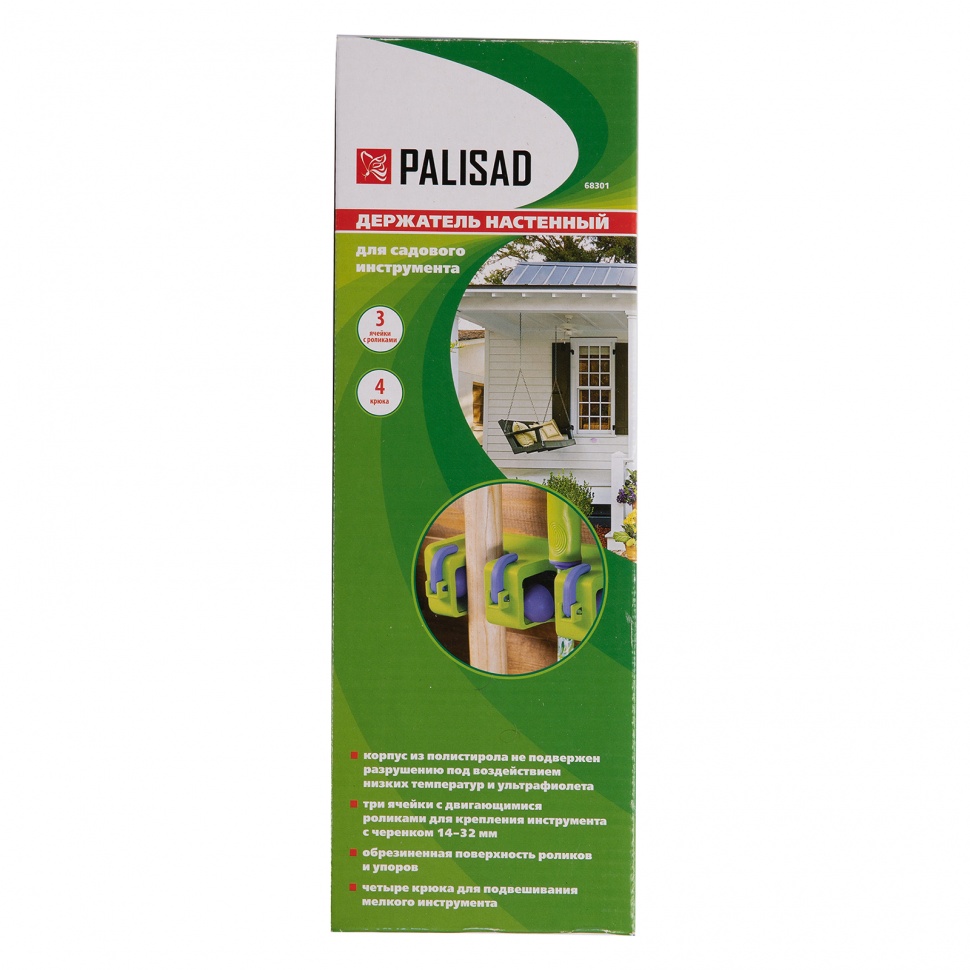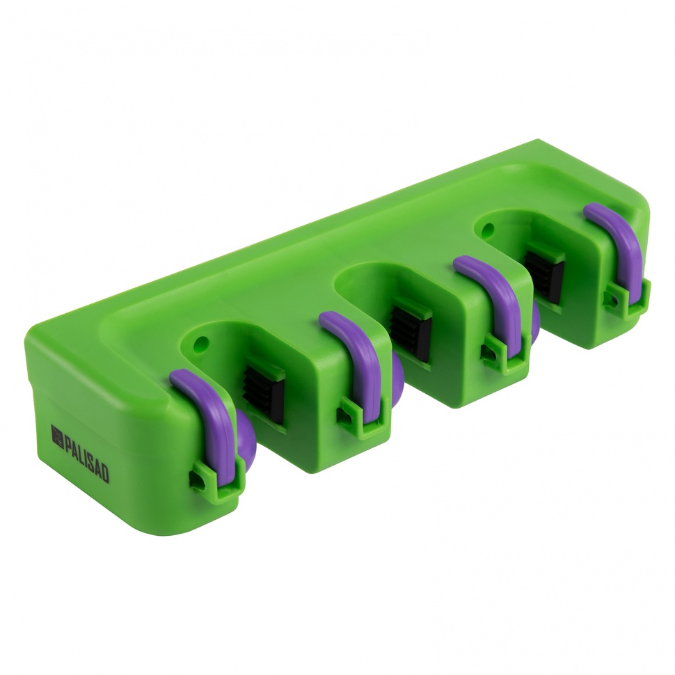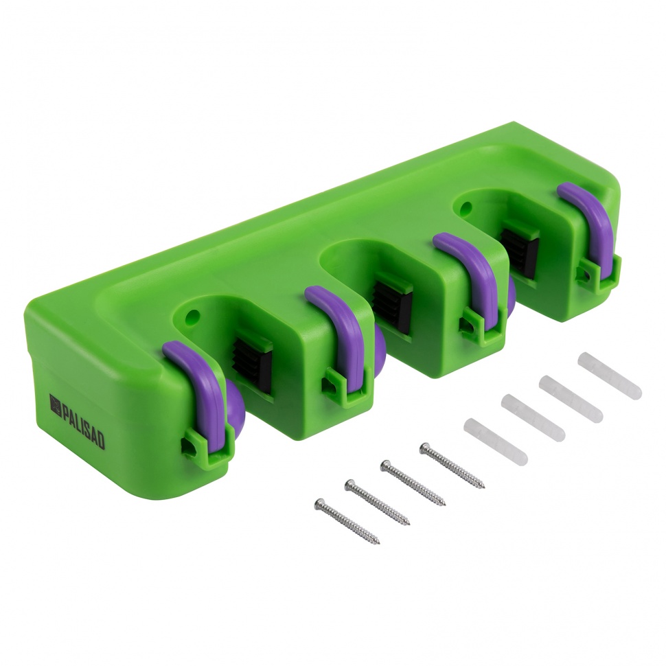 Пластиковый настенный держатель Palisad 68301 с 3 ячейками и 4 крюками используется для хранения садового-огородного инструмента. С ним инвентарь можно разместить в подвешенном состоянии, что позволяет упорядочить рабочее пространство. Подвесное хранение обеспечит безопасное хранение инвентаря и исключит риск их поломки. На роликах можно разместить рабочий инвентарь, а на крючках — мелкие бытовые предметы.ПреимуществаПодвижные самозажимные ролики — можно вешать инструменты без отверстия в рукоятке.Надежный захват — ролики имеют обрезиненную поверхность, поэтому предметы не выпадают.Качественное исполнение — ячейки и зажимы из ПВХ, крюки и основание из полистирола обеспечивают держателю стойкость к перепадам температур.Размещение нескольких инструментов — держатель имеет 4 крюка и 3 ячейки.Прочность и надежность — держатель выдерживает нагрузки до 15 кг, ролики — до 5 кг, крюки — до 3 кг.Набор крепежа в комплекте — держатель можно сразу устанавливать на стену после приобретения.