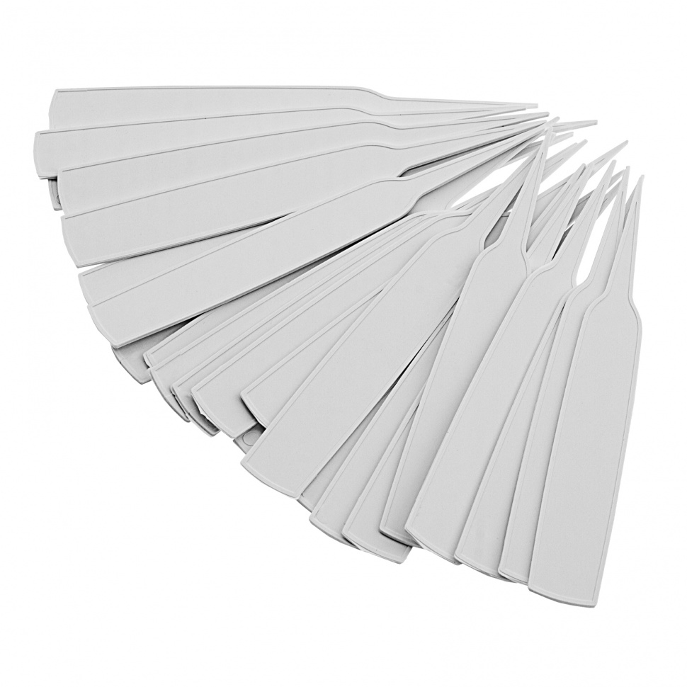 Посадочные таблички Сибртех 64301, 14 х 1,5 см, 25 шт. в упаковке, позволяют организовать порядок на садовом и огородном участке и выделить необходимую информацию о посадках. Также их можно использовать в квартире для маркировки комнатных растений или рассады. Информацию на таблички можно наносить спиртовым маркером или простым «мягким» карандашом.ПреимуществаИнформация на табличках не стирается и не смывается, т.к. они изготовлены из ABS-пластика, устойчивого к любым погодным условиям.Таблички оснащены колышками с острым наконечником для легкого проникновения в почву.25 табличек в комплекте хватит на небольшой огород.