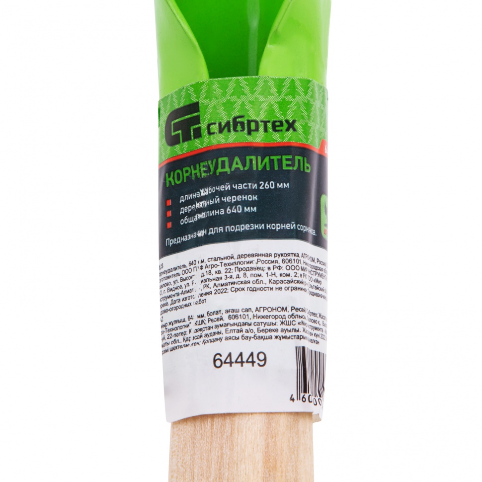 Стальной корнеудалитель Сибртех АГРОНОМ 64449 с деревянной рукояткой, 640 мм, предназначен для уничтожения сорняков со стержневой корневой системой. Он пригодится дачникам на садовом или огородном участке и поможет придать ему аккуратный вид. Удлиненная рабочая часть и угловой профиль корнеудалителя повышают эффективность работы.ПреимуществаРабочая часть изготовлена из среднеуглеродистой стали, поэтому обладает высокими прочностными характеристиками и долговечностью.Порошковая эмаль защищает стальную часть от возникновения коррозии и от воздействия агрессивной среды.Рукоятка из твердых пород древесины отличается прочностью и экологичностью.Отверстие на рукоятке позволяет подвешивать корнеудалитель на время хранения.Длина инструмента 640 мм повышает комфорт работы, позволяя занять удобную позу при удалении сорняков.