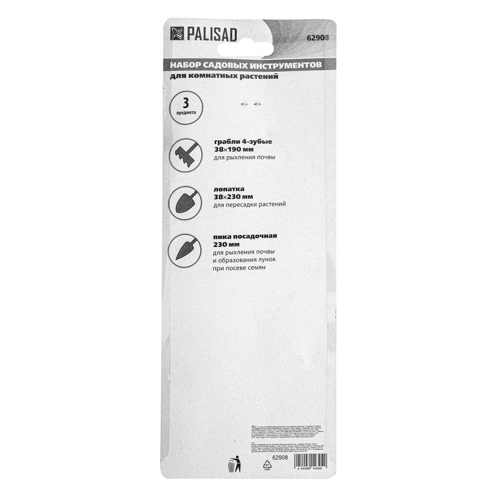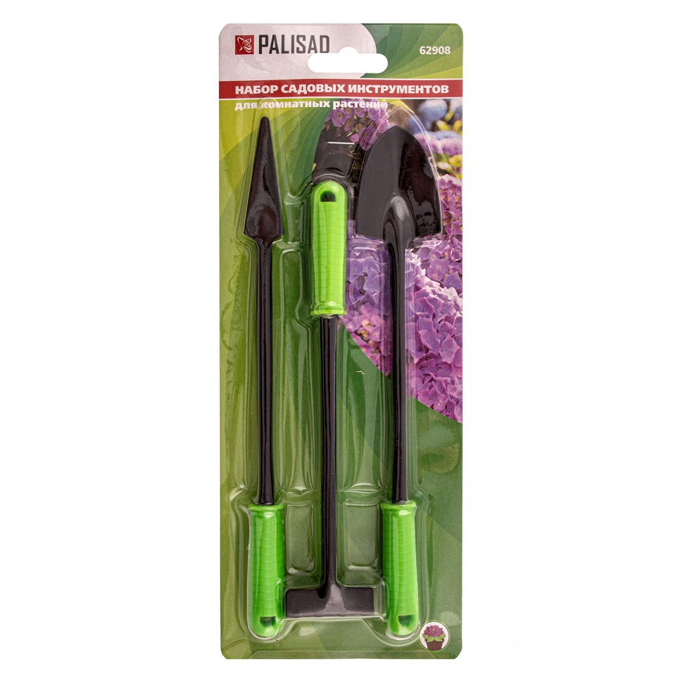 Набор по уходу за комнатными растениями Palisad 62908 из 3 предметов включает инструменты с пластиковыми рукоятками для вскапывания, насыпания и рыхления грунта, а также формирования лунок и борозд, пересадки растений. Они изготовлены из углеродистой стали и рассчитаны на долгий срок службы. Набор используют для ухода за растительностью в горшках, кадках, а также на небольших клумбах.ПреимуществаДолговечность — рукоятки из полипропилена устойчивы к воздействию ультрафиолета, покрытие из порошковой эмали защищает металлические части от коррозии.Комфортная работа — на поверхности рукояток имеются насечки, поэтому они не выскальзывают из ладони.Удобное хранение — в рукоятках имеются отверстия для подвешивания инструментов.